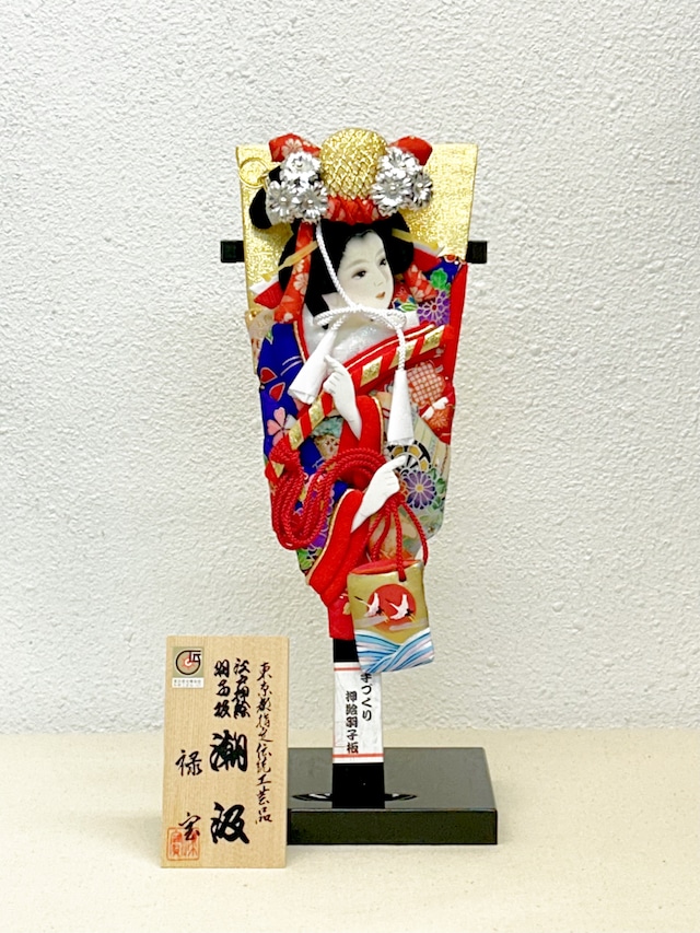 -     11号 江戸押し絵羽子板 汐汲 正絹 羽子板立台付き 禄宝作 ¥23,600 11号 江戸押し絵羽子板 汐汲 正絹 羽子板立台付き 禄宝作 江戸押し絵羽子板の歴史は古く、350年以上続く “浅草寺歳の市” は有名です。 容姿や仕草が上品で優雅な美しさがあります。 お着物は正絹を使用、絹織物ならではの上質で気品がある羽子板です。 長く愛され続ける職人技が光る作品です。 羽子板は古来より「魔除け」「厄払い」の意味があり羽根をうつことから“邪気をはね(羽根)のける“と言い伝えられています。 羽子板の形は持ち手から先に広がっている形が「末広がり」で繁栄を表す縁起物として飾られる様になりました。 お子様の健やかな成長を願って初正月を迎える女の子へのお祝いの品として贈られます。 (サイズ) ※飾った状態の一番長いところを測っています 巾:約15cm 奥:約12cm 高:約35cm ※ご希望の方にはのし紙をお付けしますので備考欄よりお知らせ下さい。 贈り主様のお名前をお知らせください。 ------------------------------------------------------- 「江戸押絵羽子板」とは 江戸時代より引き継がれている様式、きちんとした髪型、装束で作成されたものです。 江戸から伝わる押絵の技術、技法により作られた羽子板です。 厳格な審査に合格した東京都指定伝統工芸品です。 ------------------------------------------------------- “顔の良いことで有名”のフレーズでお馴染みの山本人形本店へようこそ 大阪市の松屋町筋にお店があります。 お店に足を運んでいただくのが難しいお客様もいらっしゃいます。 品物に関して画像や説明文では伝わらない所がたくさんあります。 わからないことや疑問に思う事はお気軽にお尋ね下さい。 初正月、初節句などお祝い事でお困りのことなどお気軽にご相談ください。 ------------------------------------------------------- ■画像の発色には、気をつけていますが若干風合いが濃くなったり薄くなって要る場合があります。 ご了承頂けますようにお願い致します。 ■湿気に弱いため防虫剤を入れてできれば風通しの良い所に保管して下さい。 ⚠️離島にお住まいの方は送料2800円も一緒に選択お願いします(別途送料がかかります) #初正月 #初節句 #お祝い #破魔弓 #縁起物 #インテリア #お正月 #海外お土産