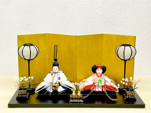 小三五 親王飾り 桜柄 白色 雛人形 【山本人形オリジナル商品】 数量限定! お買い得商品です! 色違いのお着物をお召しになられたお雛様です。 お殿様は白色、お姫様は赤色のお着物に桜が散りばめられた春らしいお衣装です。 お殿様の腰には石帯を締めています。 飾り台は木製品、黒塗り、俵台 足の部分が筒状で丸みがあります。 屏風は控えめな金色の三曲屏風。 雪洞はプラスチック製品、LEDライト、電池式のコードレスタイプです。 蛤香合は自然蛤に純金箔を施した手作りの作品です。 紅白のお花(つまみ細工)を添えて飾っていただきます。 蛤は他の貝殻と合わないことから縁起物として結婚のお祝い、初節句のお祝いなどの品物に喜ばれています。 ※特典品 人形専用保存剤、白手袋、毛ばたき、クロス、雛人形の飾り方しおり、毛氈(もうせん) 親王、親王台、飾り台、屏風、雪洞、蛤香合、特典品一式お届けします。 ------------------------------------------------------- 【飾り寸法】 (飾った状態の一番長い所を測っています) 幅:約55cm 奥:約30cm 高:約30cm ※ご希望の方にはのし紙をお付けしますので備考欄よりお知らせ下さい。 ------------------------------------------------------- 職人さんが心を込めて作られたお雛様が より一層輝き素敵に見えるように… そしてお客様に喜んで飾っていただけるように… 心がけてこだわってセットしています。 なかなか写真では伝わらない難しい所もありますので わからないことや疑問に思う事はお気軽にお尋ね下さい。 ------------------------------------------------------- ■裁断する所によってお着物の柄の位置が変わります。 ■蛤香合は国産の自然蛤を使用しているためサイズにばらつきがあります。 素手で触ると金箔が剥がれ落ちたり変色の原因になりますのでご注意下さい。 ■画像の発色には、気をつけていますが若干風合いが濃くなったり薄くなって要る場合があります。 ご了承頂けますようにお願いいたします。 ■到着しましたら箱に入っている状態を写真に撮っておかれるとお片付けする時に悩まず便利だと思います。 ■湿気に弱いため防虫剤を入れてできれば風通しの良い所に保管して下さい。 ⚠️離島にお住まいの方は送料2800円も一緒に選択お願いします(別途送料がかかります) 雛人形 雛祭り 桃の節句 親王飾り お内裏様 初節句 お祝い コンパクト シンプル インテリア