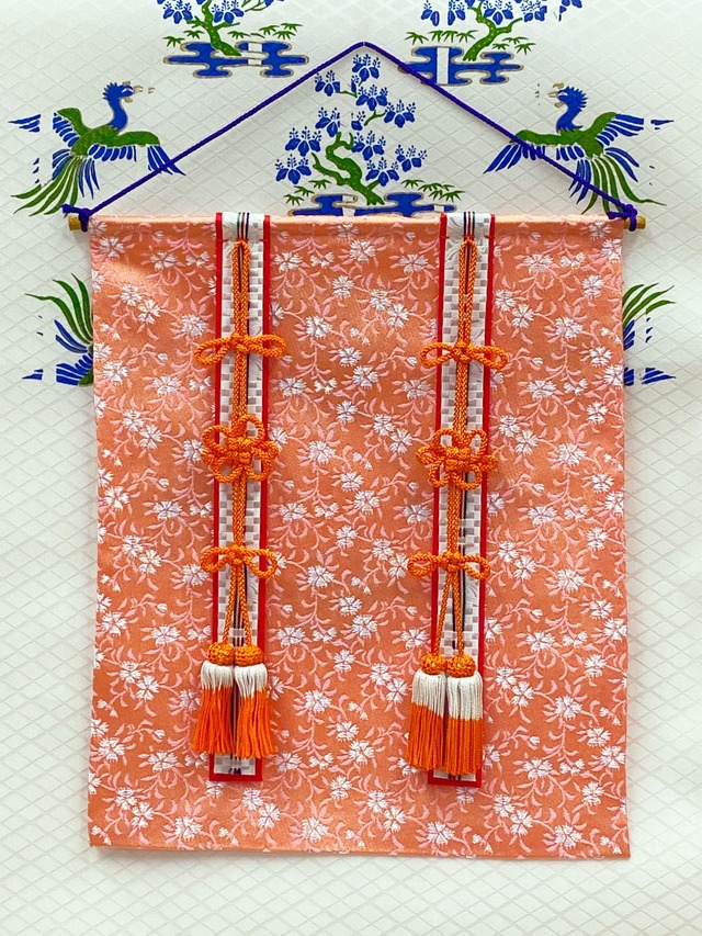 几帳○壁飾り○タペストリー○小桜柄○サーモンピンク○几帳-4