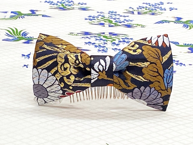 ご覧いただきましてありがとうございます。 ハンドメイドの髪飾りです。 厚みのある織物生地に型くずれしないように紙を裏張りして作っています。 金襴生地で作ったリボンは光沢があり華やかさを演出してくれます。 紺色生地に大ぶりの柄が目を引くリボンです。 花柄、吉祥柄のリボンはお祝いの席にピッタリです。 まとめ髪に挿すだけ、簡単に使っていただけます。 成人式、卒業式、入学式、結婚式、パーティ、七五三、お正月、浴衣、着物などの和装に合わせて使っていただけたら嬉しいです。 〈サイズ〉 リボン:約14×8cm ヘアーコーム20本足 ※入金確認後、約3日以内の発送とさせて頂きます。 定形外郵便にて追跡番号お付けして送料無料でお届けします。 平日のみの発送になりますのでよろしくお願い致します。 (土日祝日はお休み) ------------------------------------------------------- 簡単なプレゼント包装になりますが無料でラッピングさせて頂きます。 ご希望の方はコメント欄よりお知らせ下さい。 基本は簡易梱包になりますのでよろしくお願い致します。 ------------------------------------------------------- ■基本は簡易梱包でのお届けになります。 ■一つ一つ丁寧に作っていますがハンドメイドの作品のため左右対称でないなど誤差があります。 完璧な作品でないことをご了承ください。 ■雨など水に濡れると型くずれしますのでご注意下さい。 ■画像に関して細かな色味が違う、イメージと違う等あると思いますがご理解いただきご購入おねがいいたします。 成人式 七五三 結婚式 卒業式 お茶会 お祭り イベント パーティ 振袖 袴 浴衣 着物 和装 和風リボン ヘアーアクセサリー 和柄 和 シンプル
