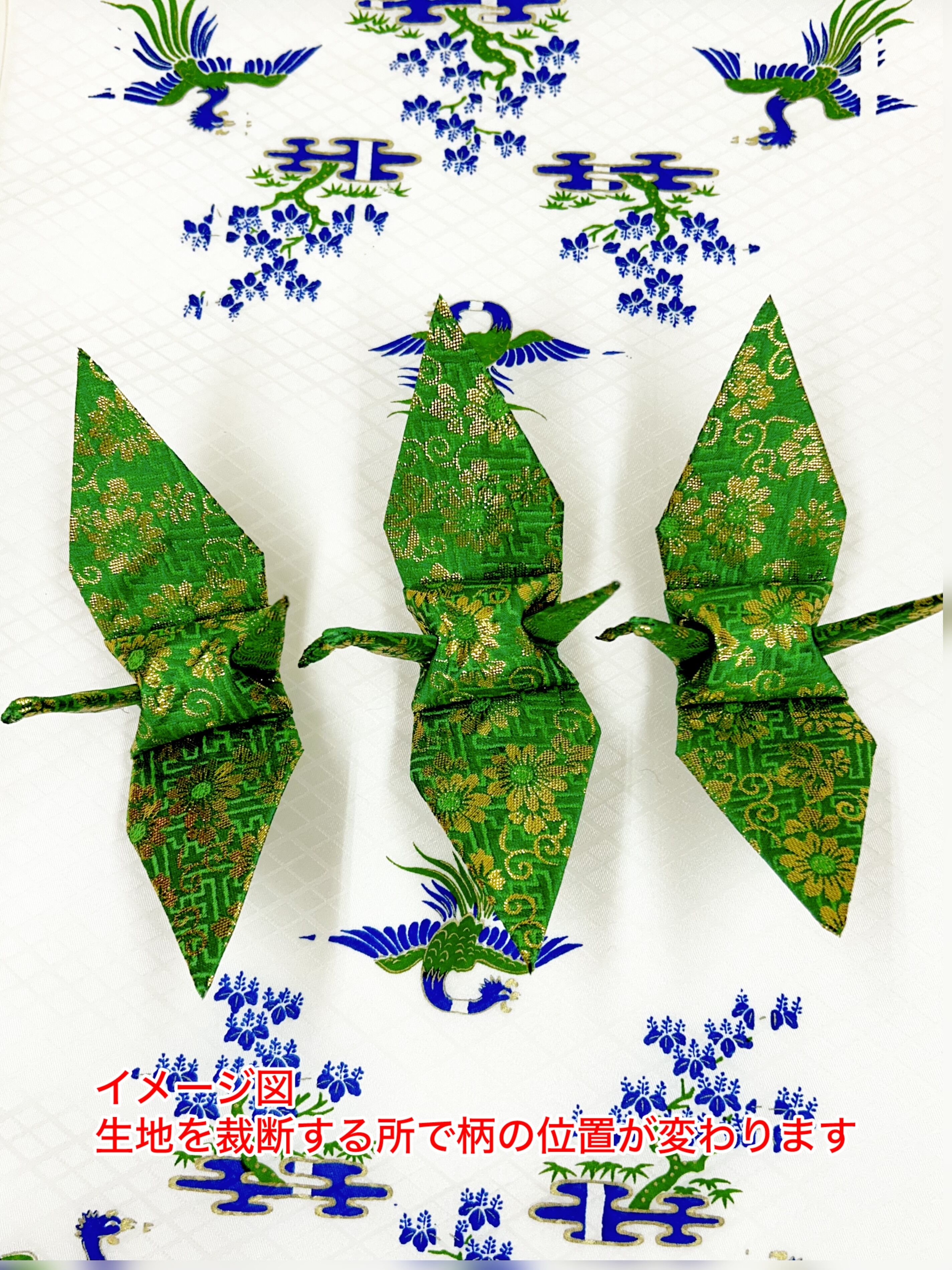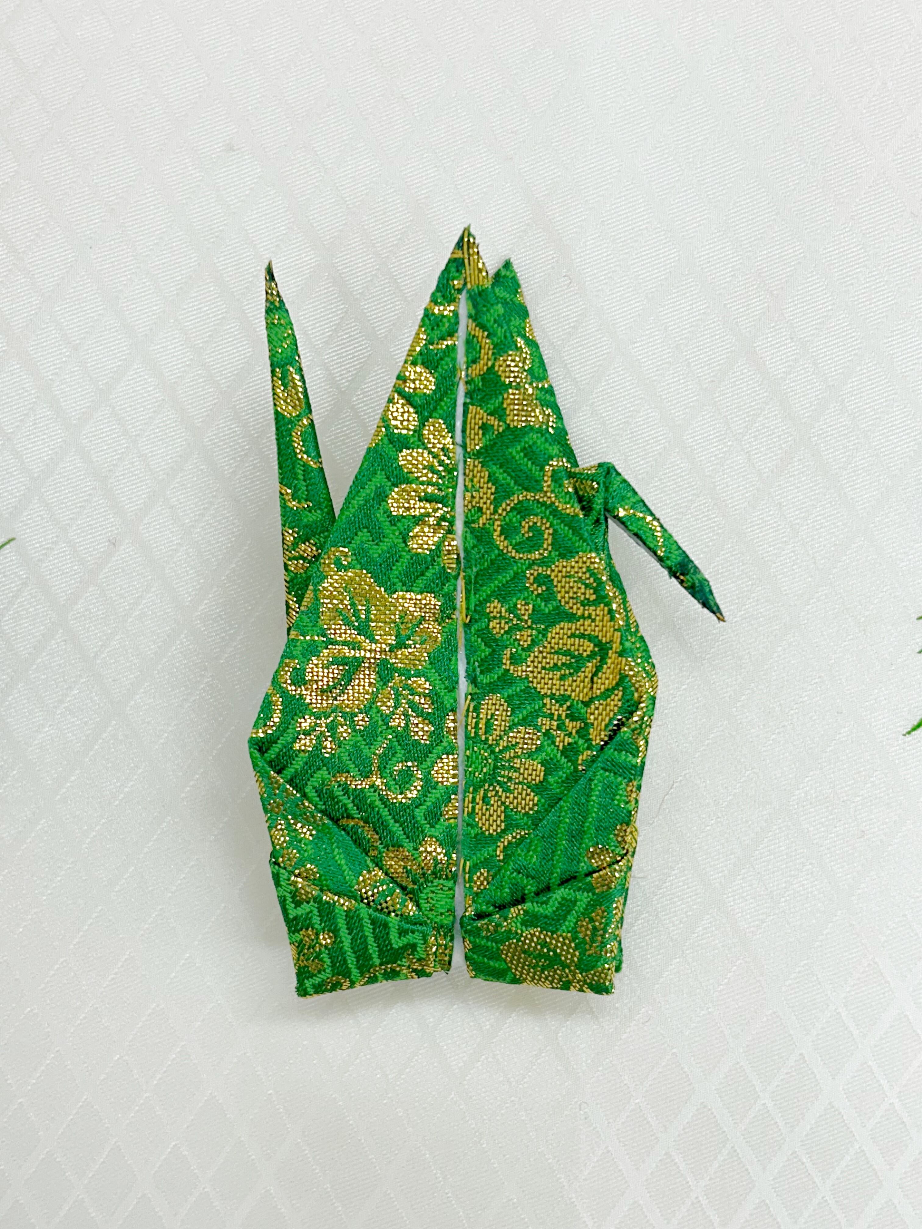 折り鶴○花唐草文様○緑・ゴールド○金襴折り鶴-63 (送料無料・追跡番号付き)