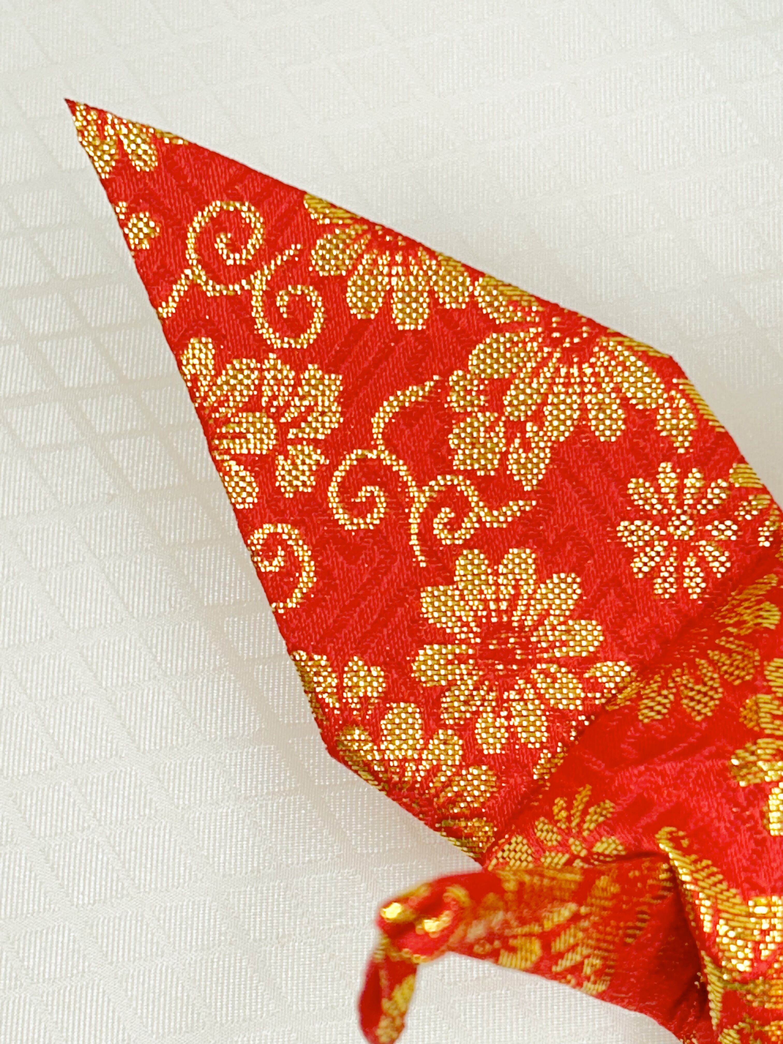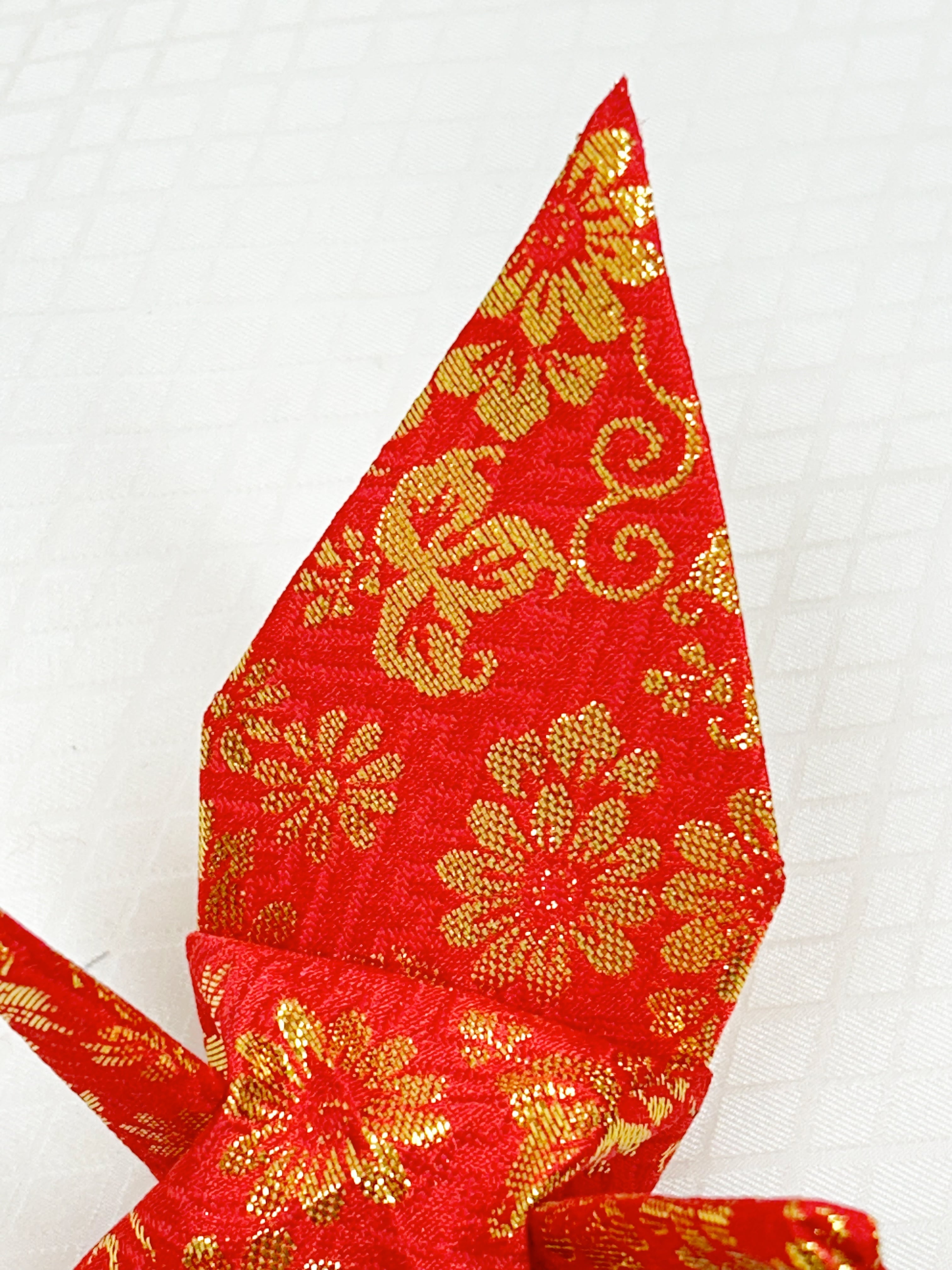 折り鶴○花唐草文様○赤・ゴールド○金襴折り鶴-64 (送料無料・追跡番号付き)