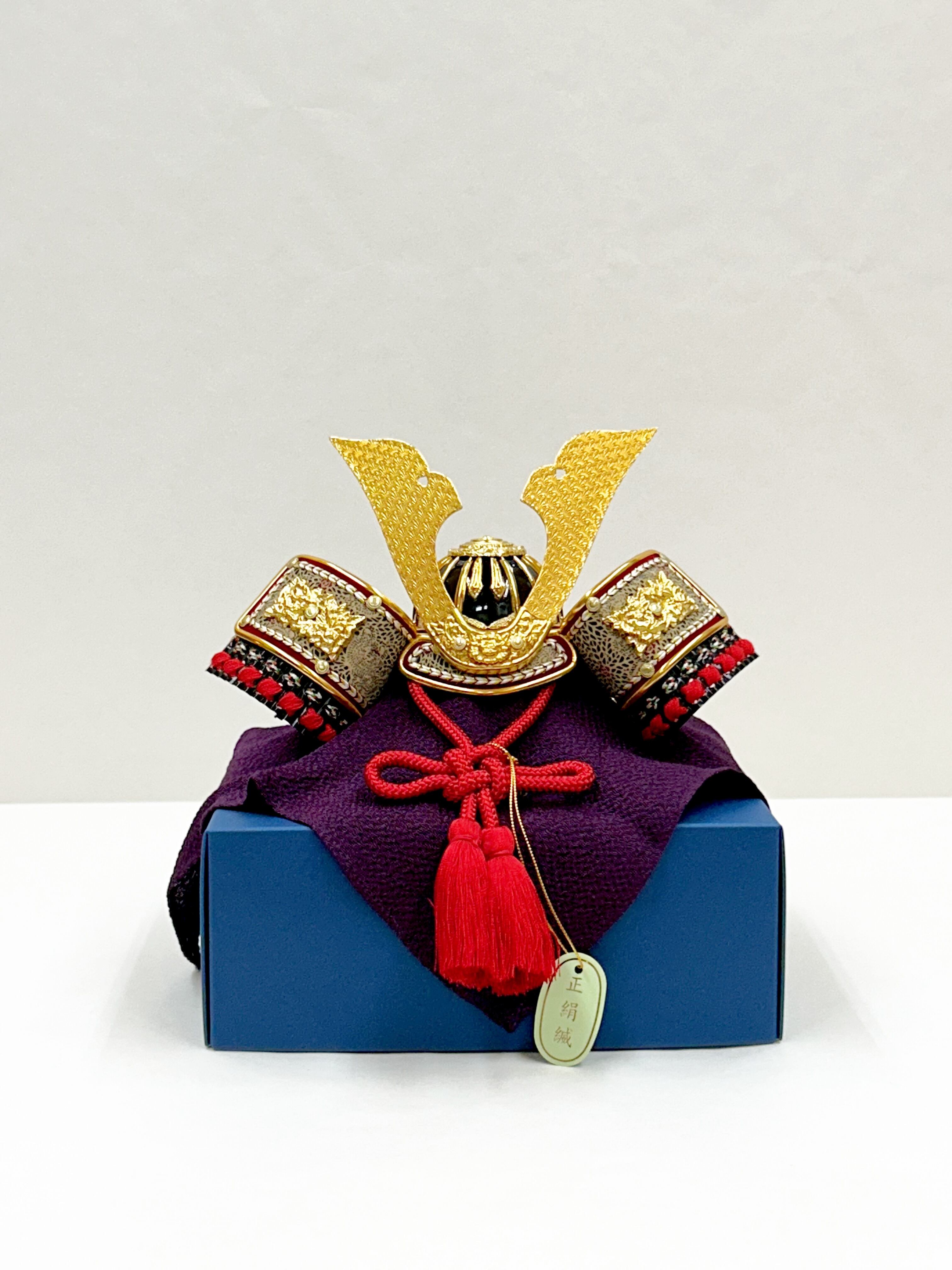 5号兜ミニ 赤糸兜 黒小札 兜鉢・黒色 箱入り No.1 五月人形
