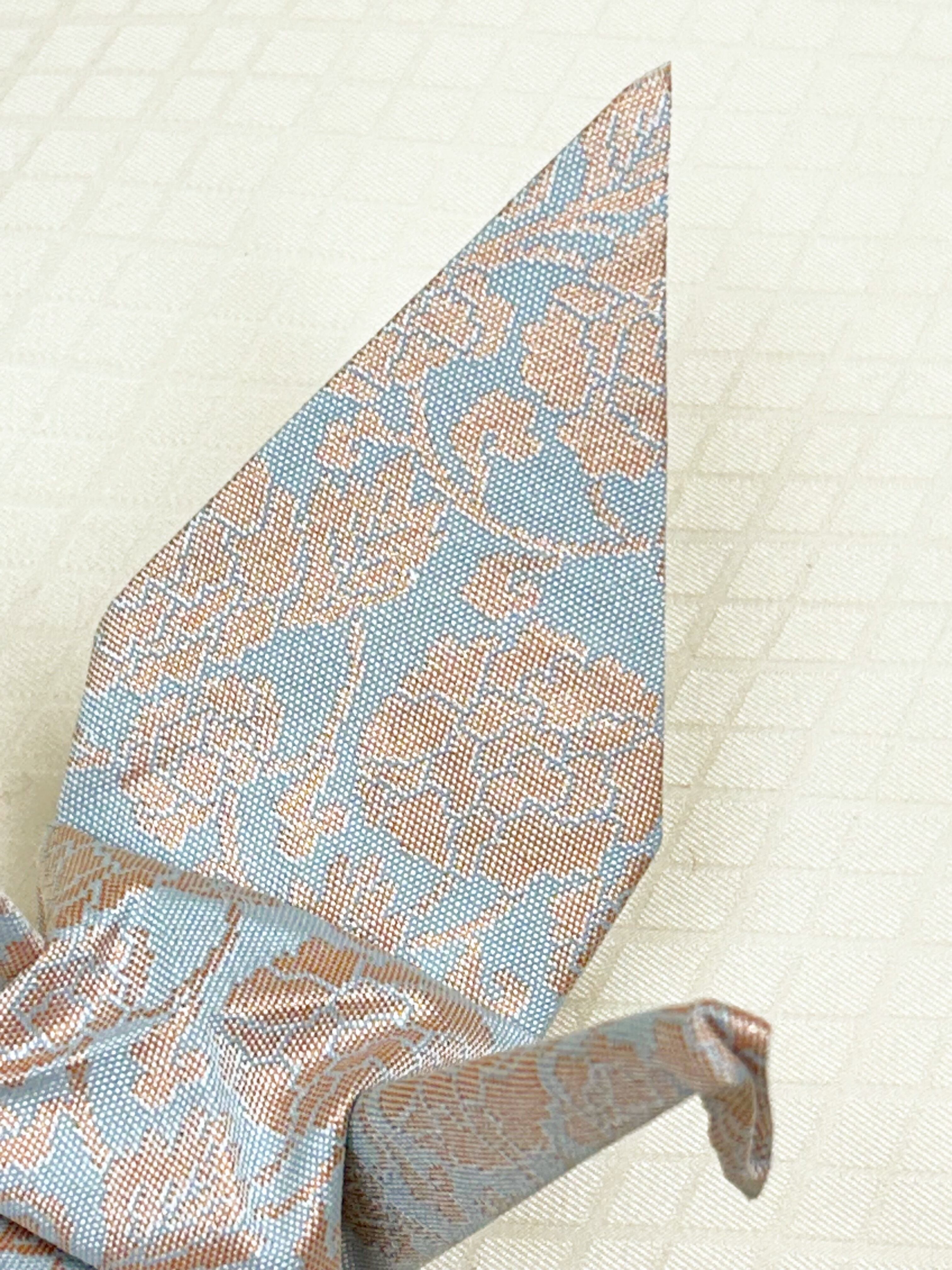 折り鶴○牡丹唐草文様○淡い水色・淡い金色○金襴折り鶴-67 (送料無料・追跡番号付き)