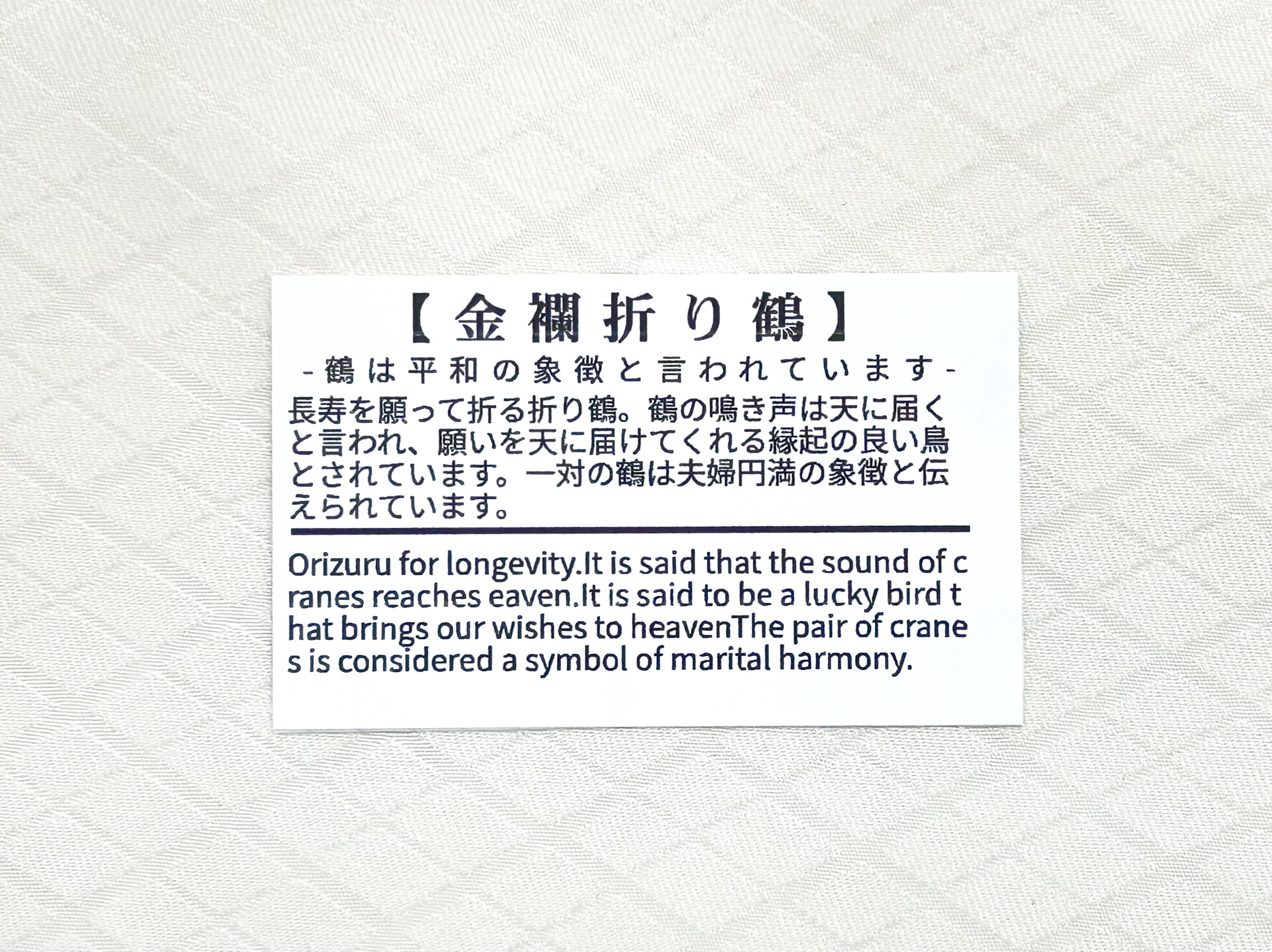 ※こちらの折り鶴はオリジナルパッケージにお入れしてお届けさせて頂きます。