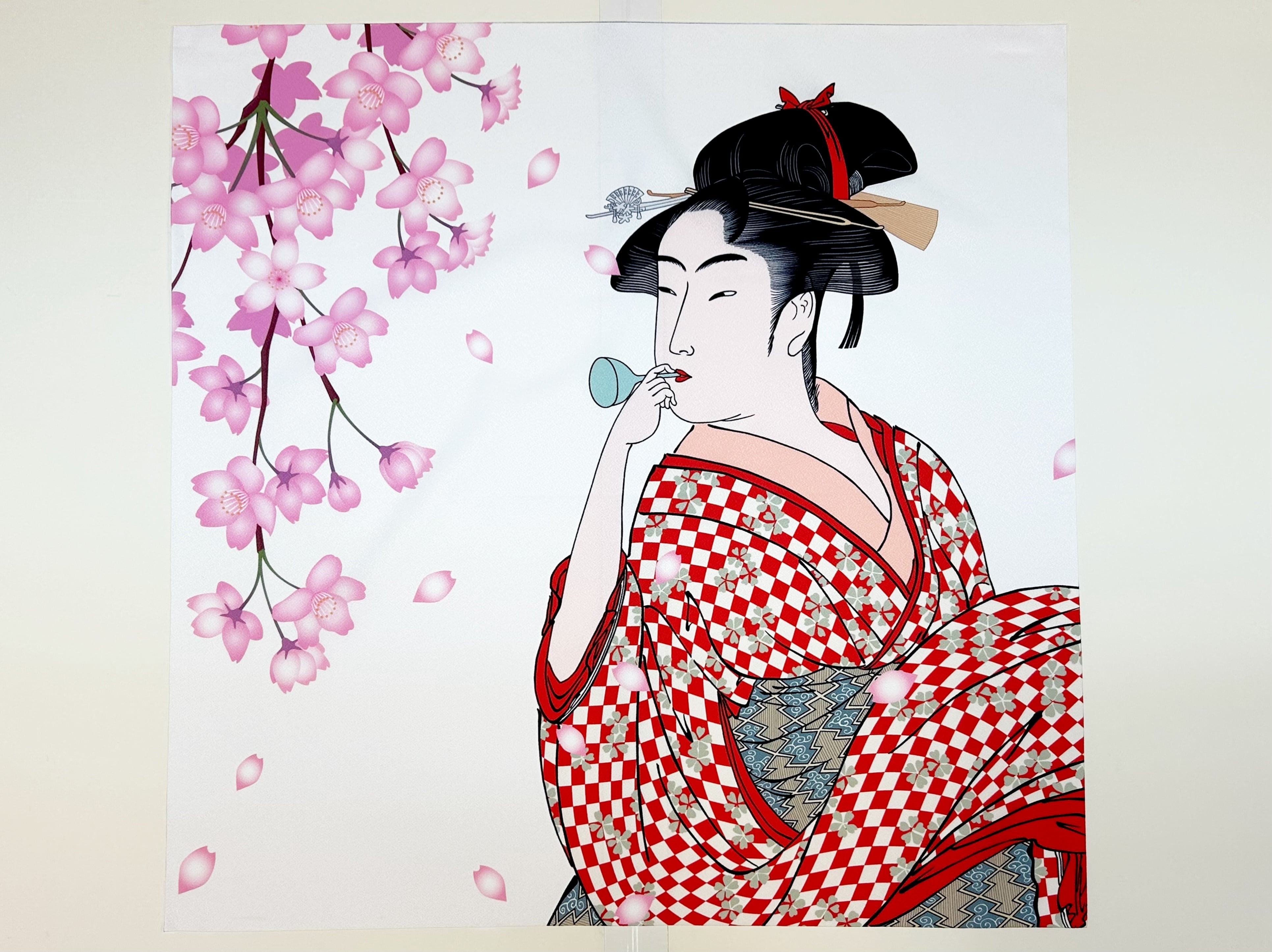 風呂敷 ポッペンを吹く娘と桜 約72×72cm
