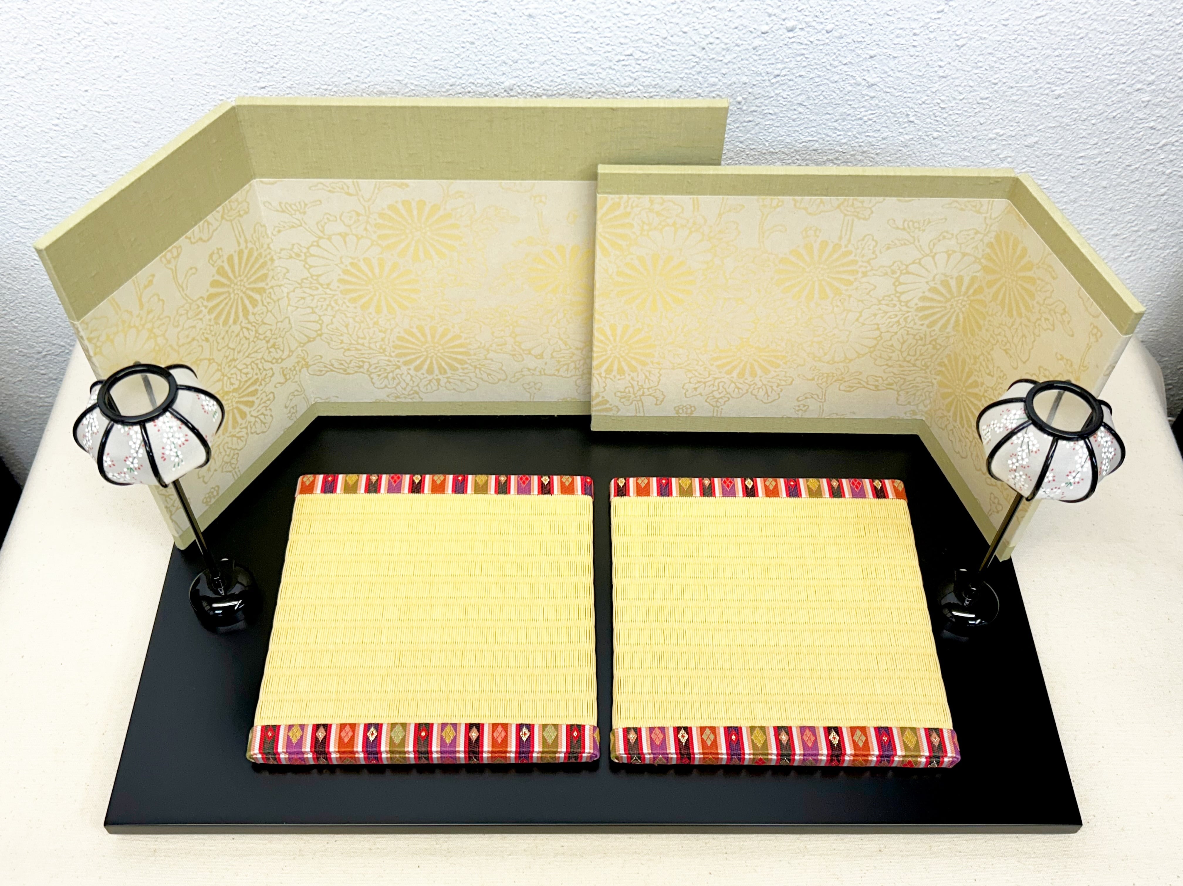 高さが違う屏風を前後に置いて飾っていただきます。