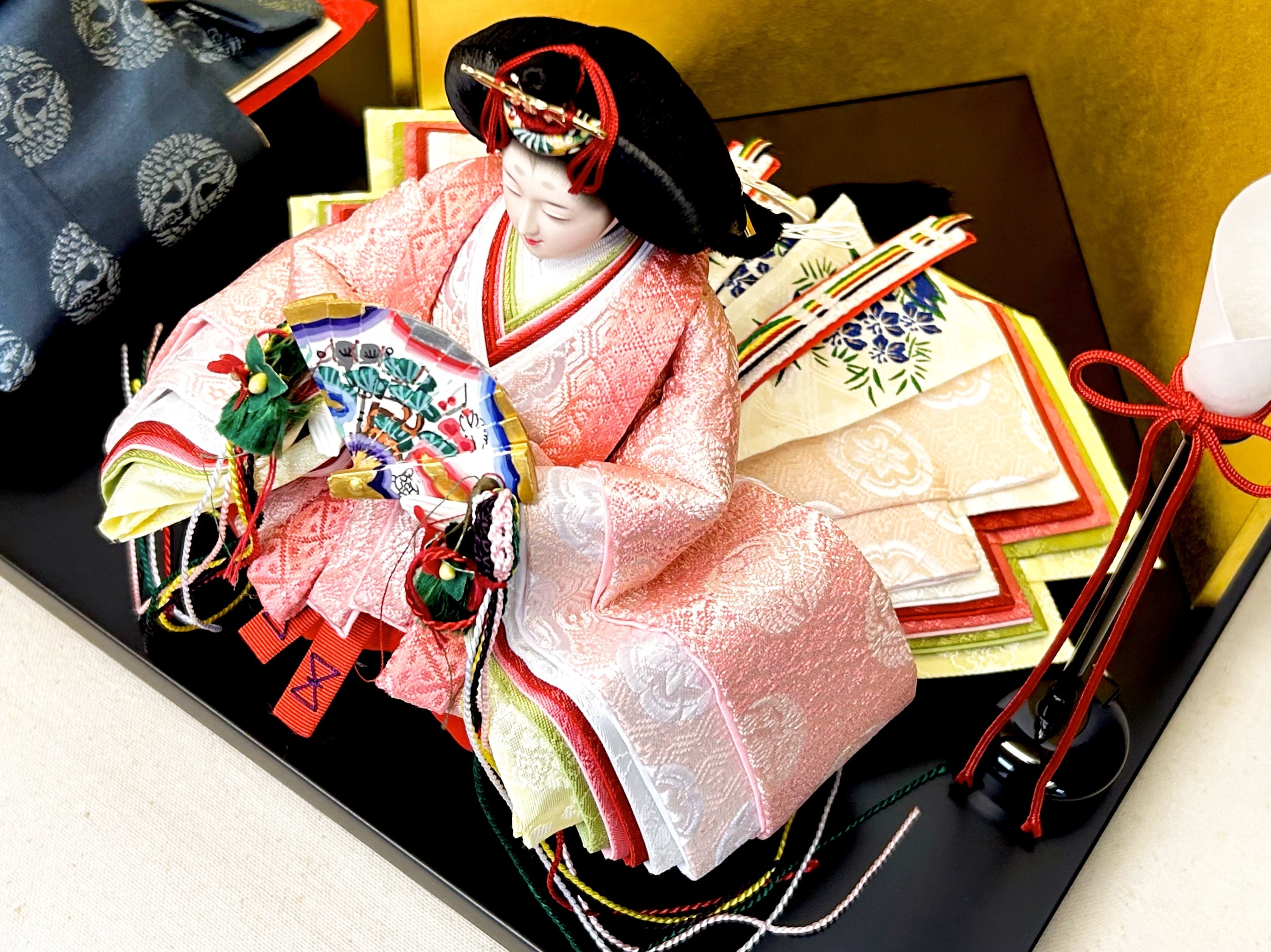 お姫様は塗り扇を持たせて高級感のあるお飾りに仕上げています。