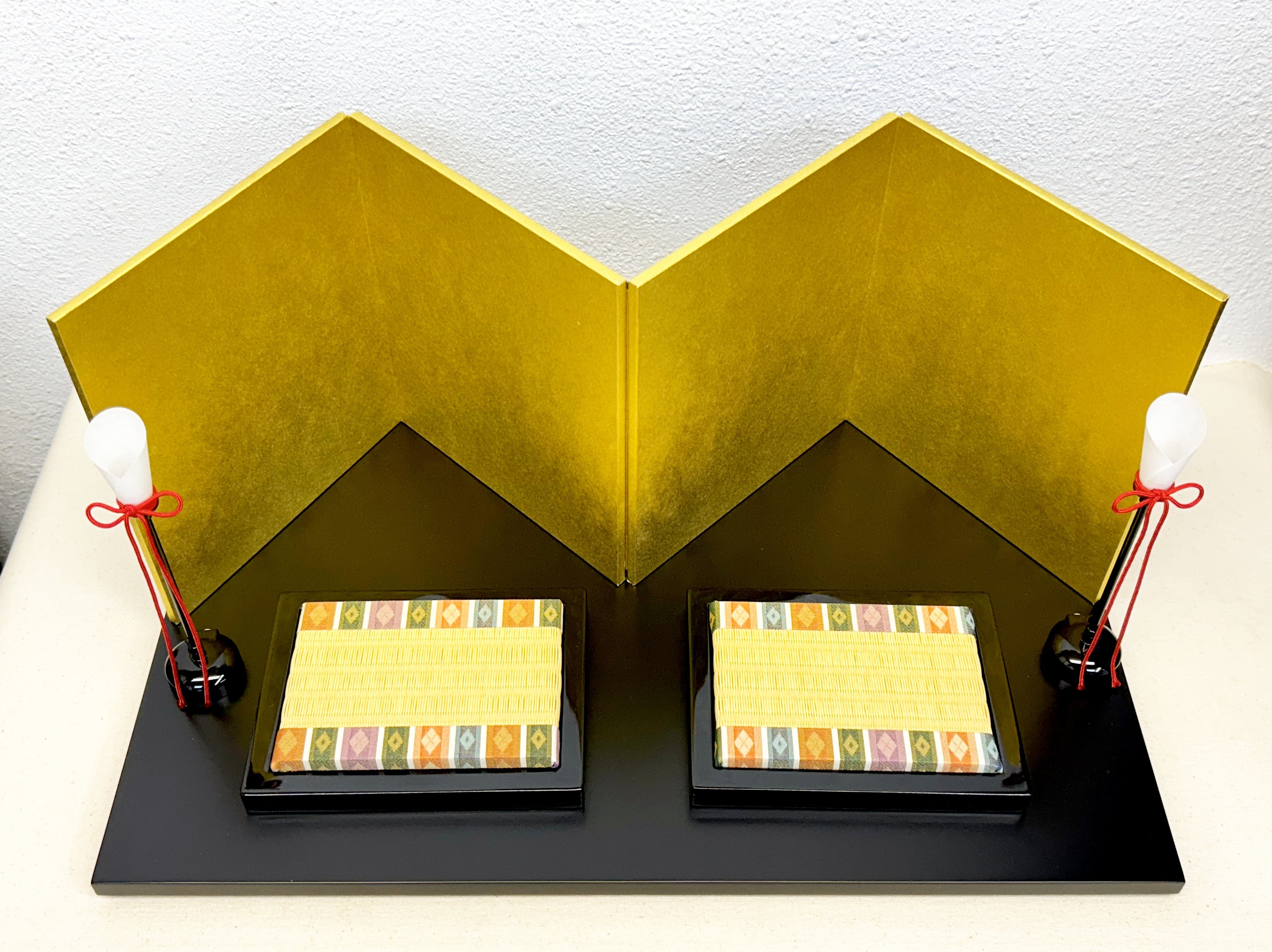 屏風は金彩和紙を使用、上品で控えめな金屏風です。