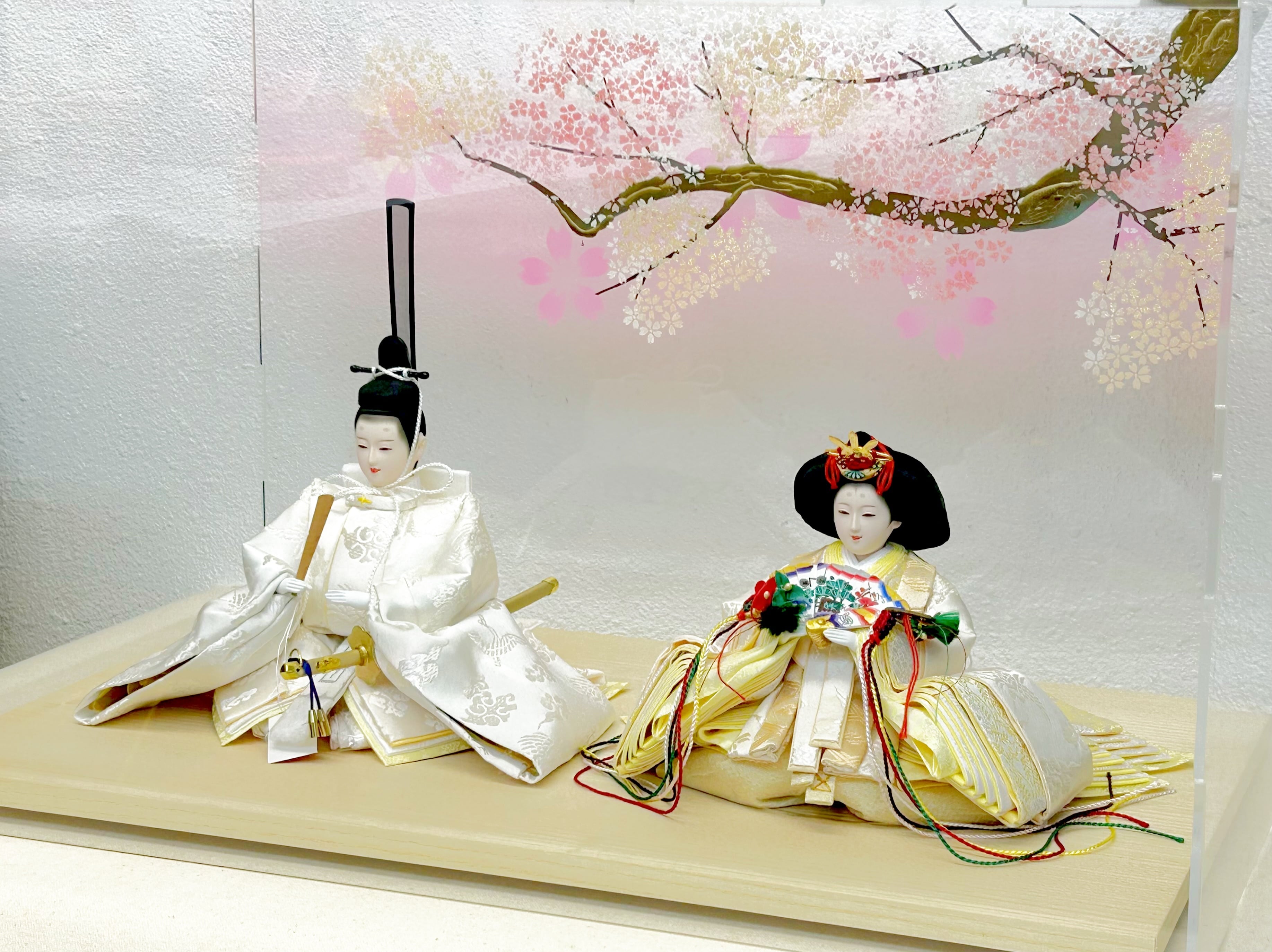 お殿様とお姫様、お揃いのお衣装をお召しになられたお雛様です。