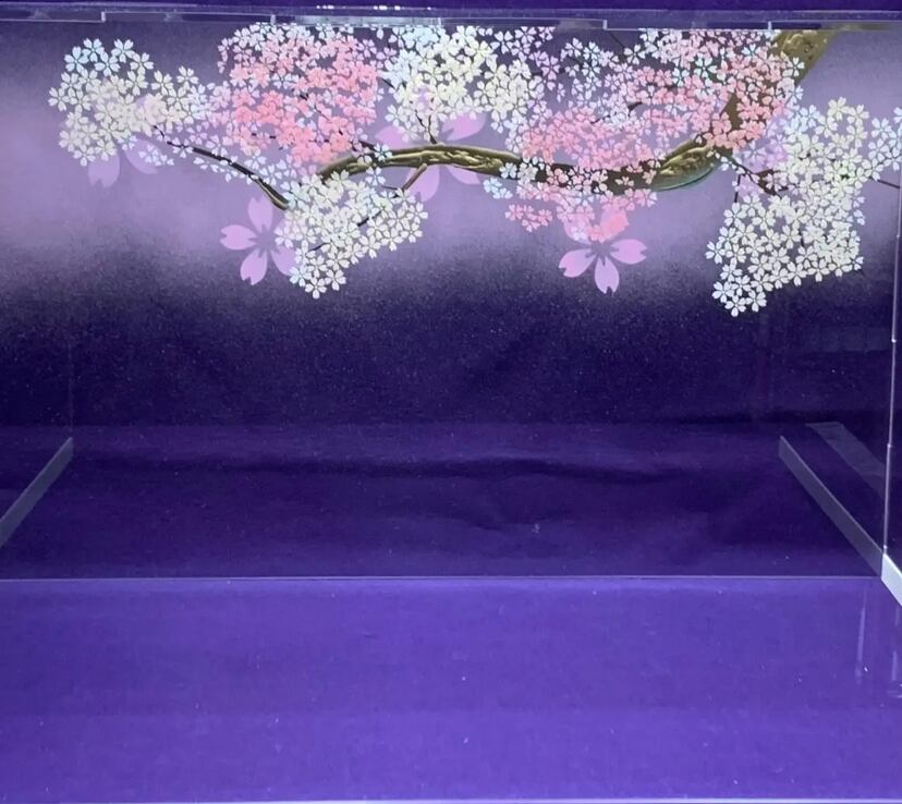 枠が無いスッキリとしたアクリルカバーはいろんな角度からお雛様を眺めていただけます。