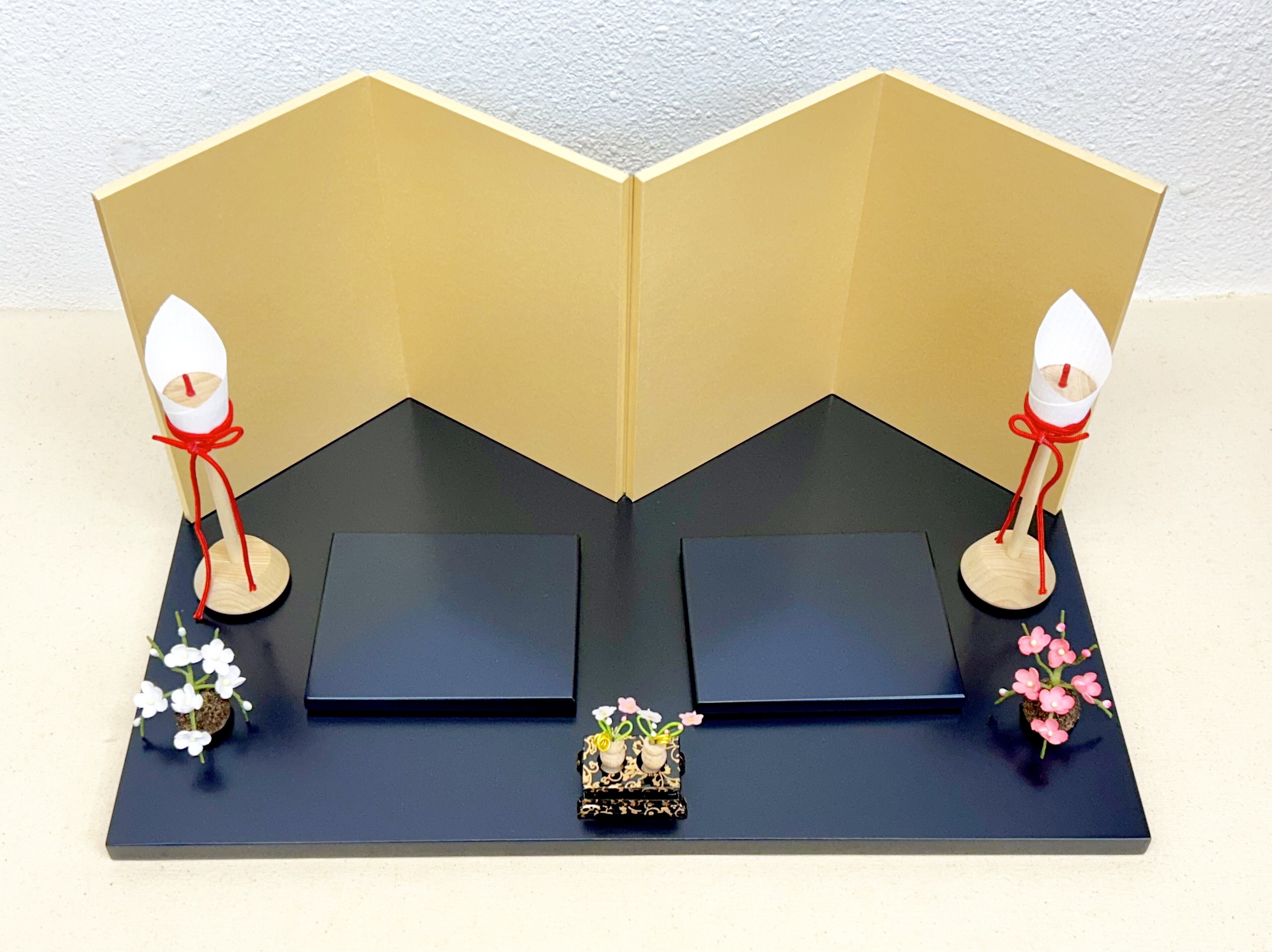 飾り台と親王台は木製品、濃紺色塗り仕上げ