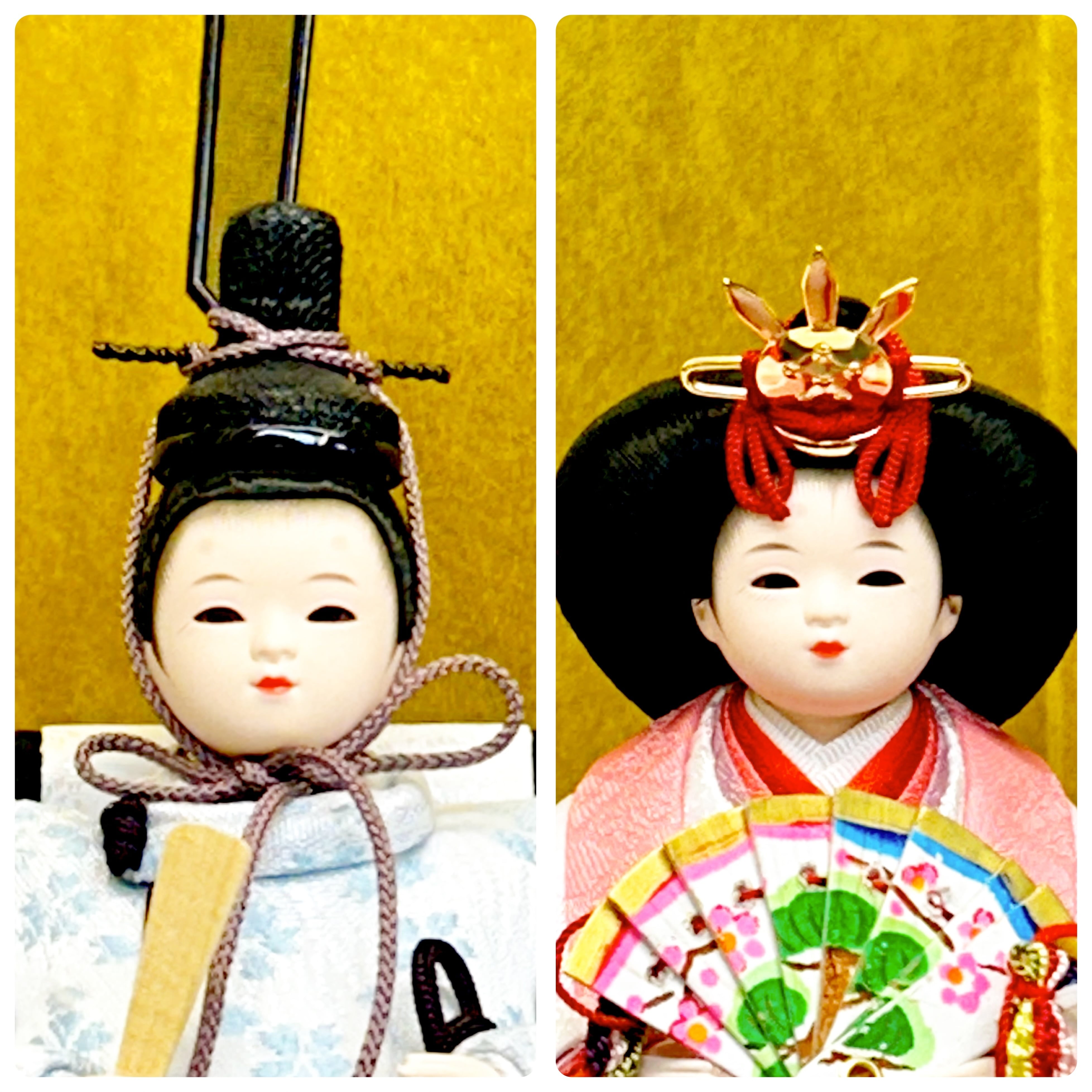 色違いのお着物をお召しになられたお雛様。