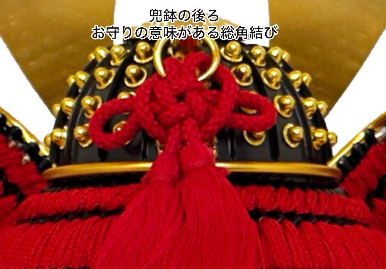 ◉兜鉢の後ろには献上、奉納、お祝いの時につける組紐(お守り)が付いています