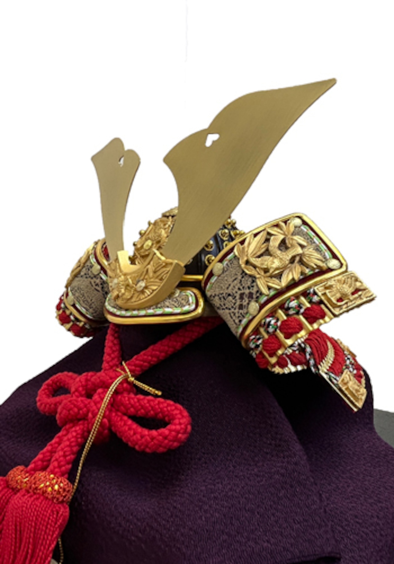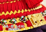 ◉兜鉢の後ろには献上、奉納、お祝いの時につける組紐(お守り)が付いています