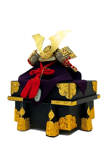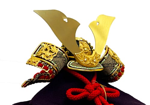6号兜 竹雀之兜 純金箔押し 赤糸縅 五月人形