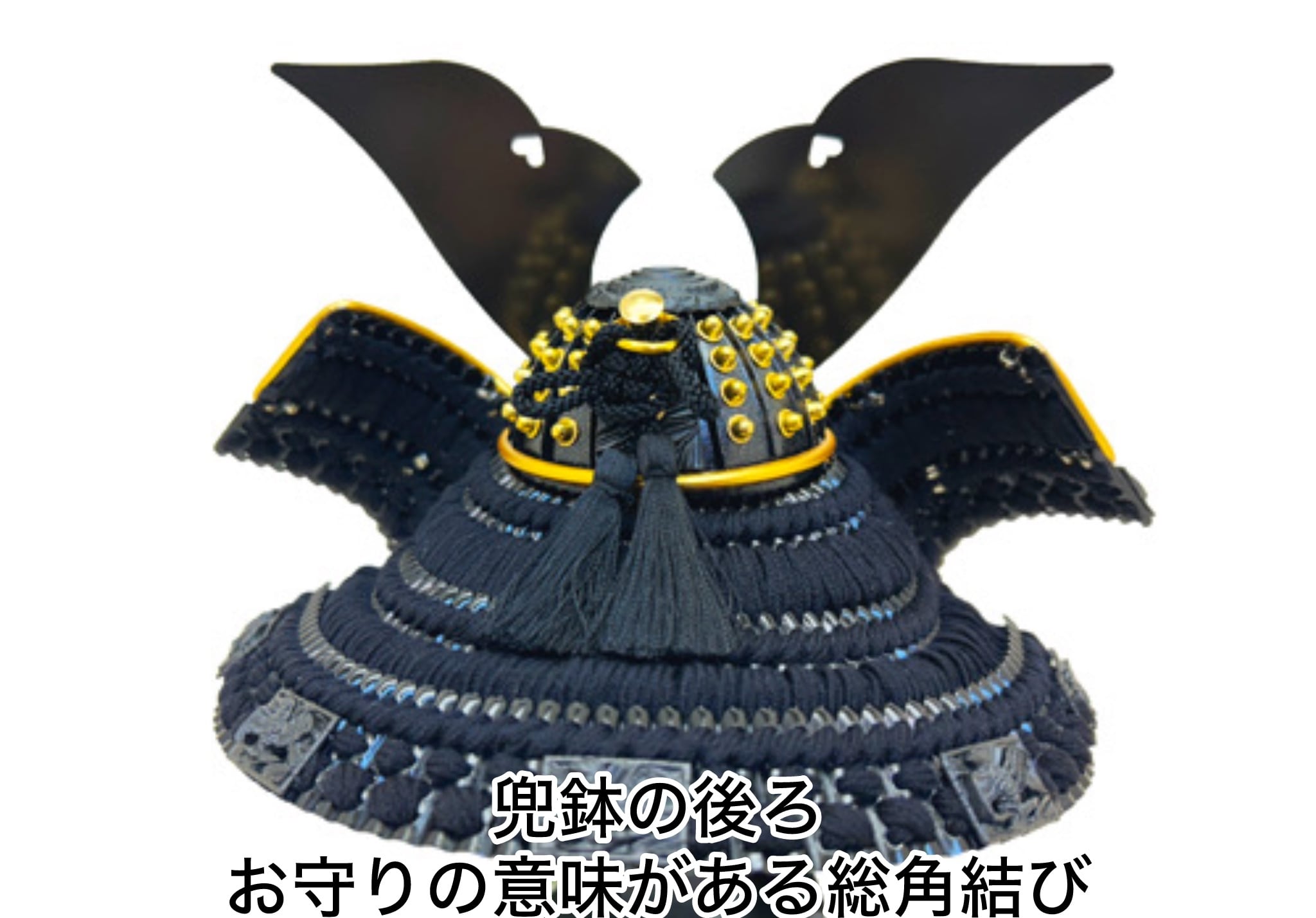 ◉兜鉢の後ろには献上、奉納、お祝いの時につける組紐(お守り)が付いています