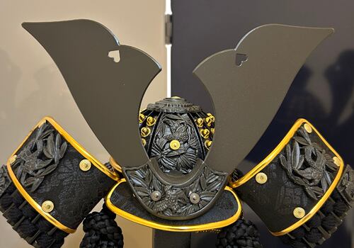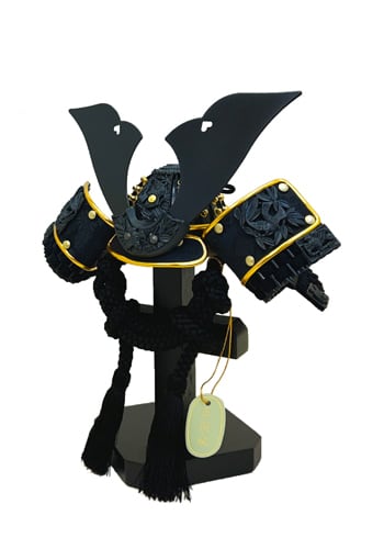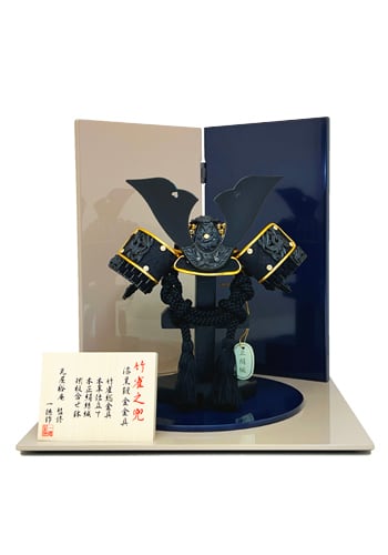 6号兜 漆黒竹雀之兜 二曲屏風飾り 平飾り