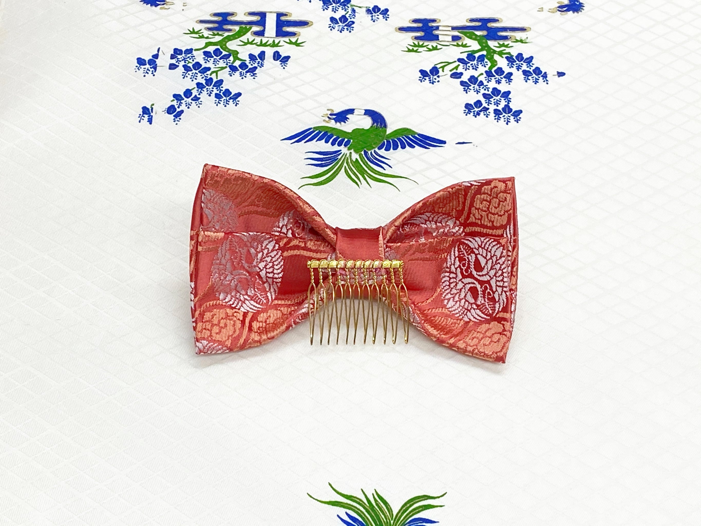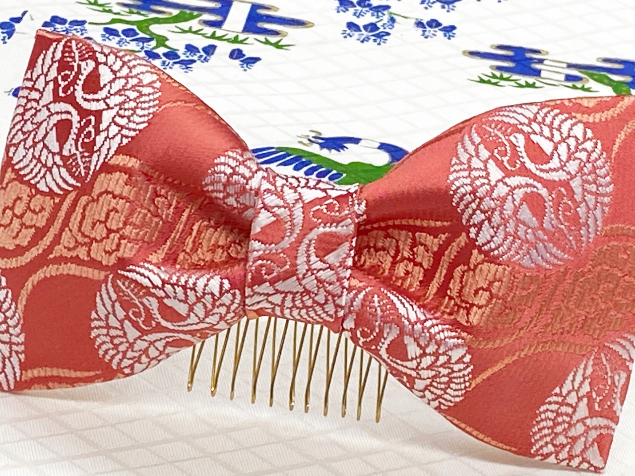 金襴生地で作ったりぼんは光沢があり華やかさを演出してくれます。