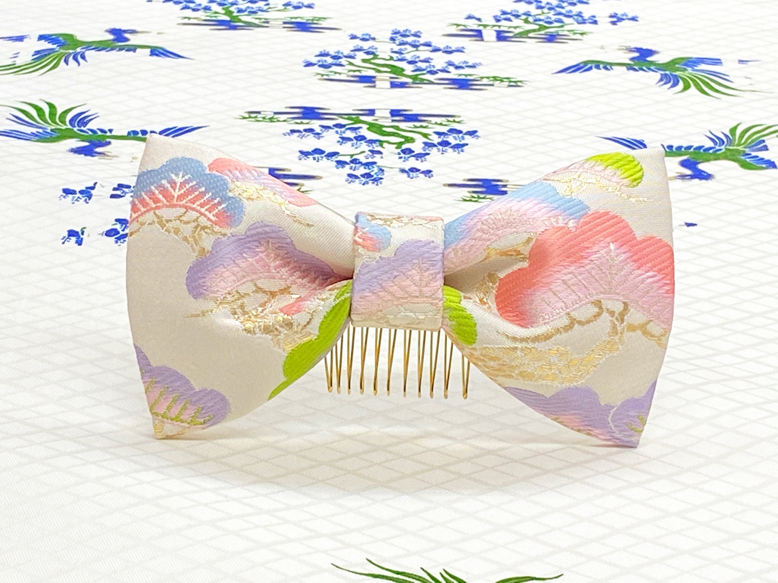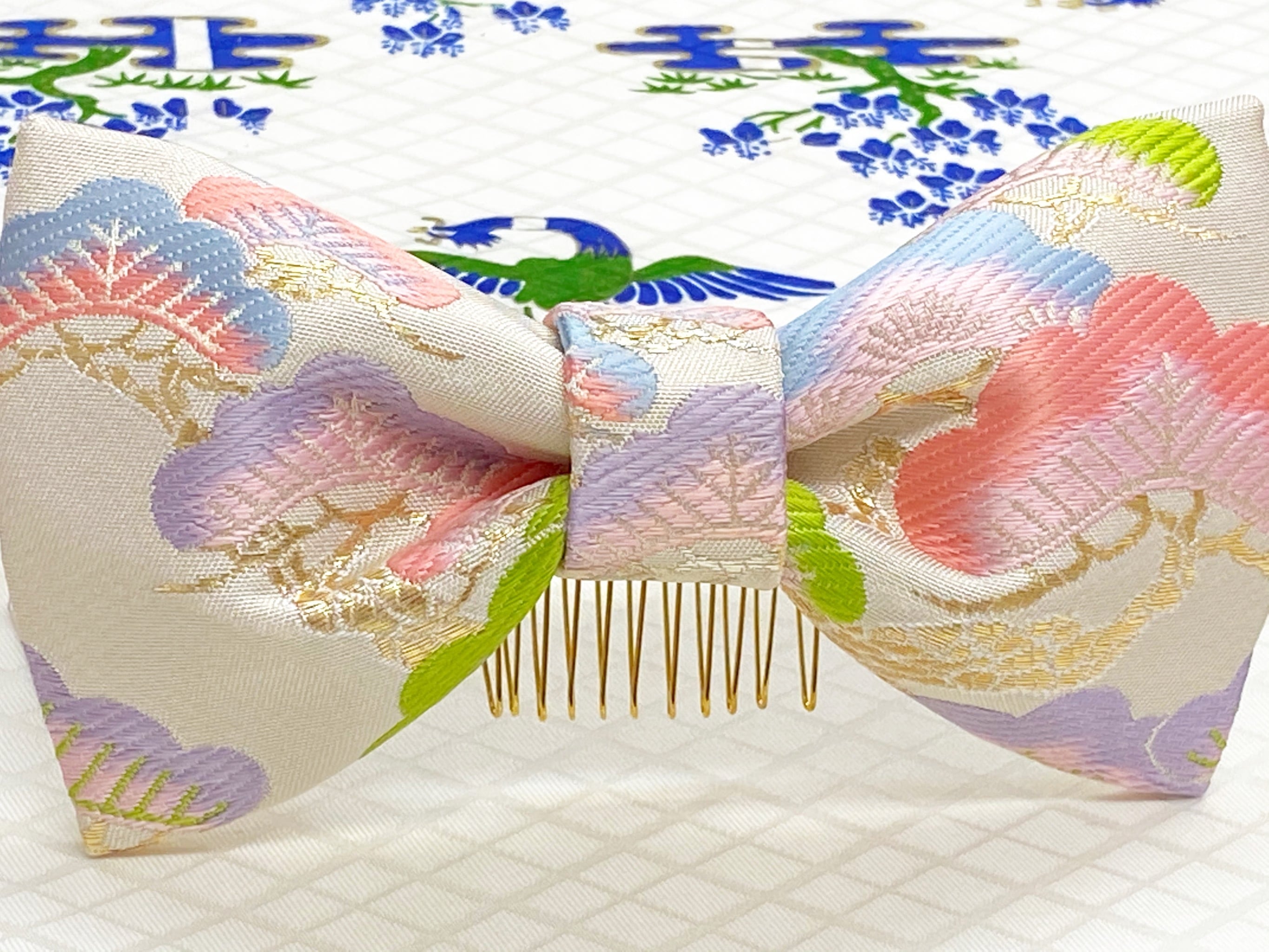 和風リボン○髪飾り○松柄ピンク○クリーム色○m-3 成人式 七五三 結婚式 卒業式 お茶会(送料無料)