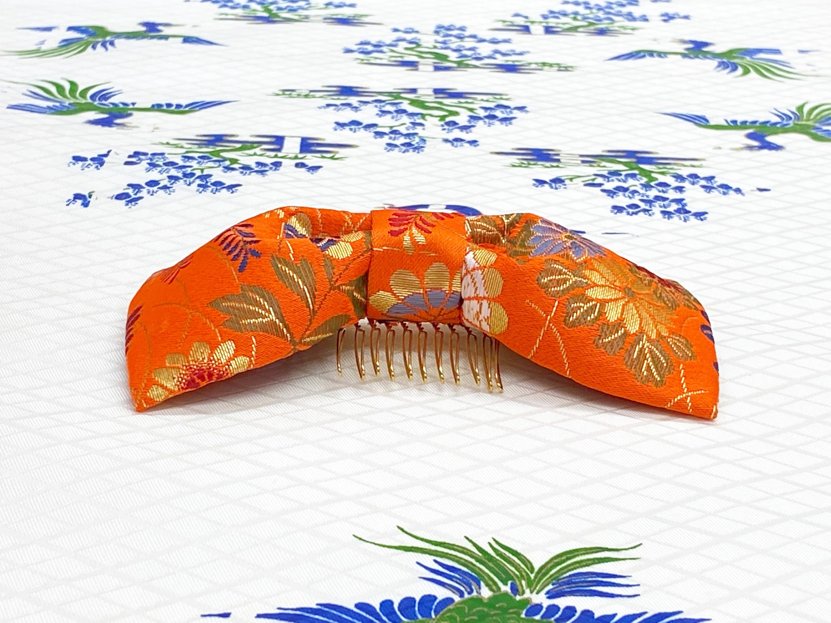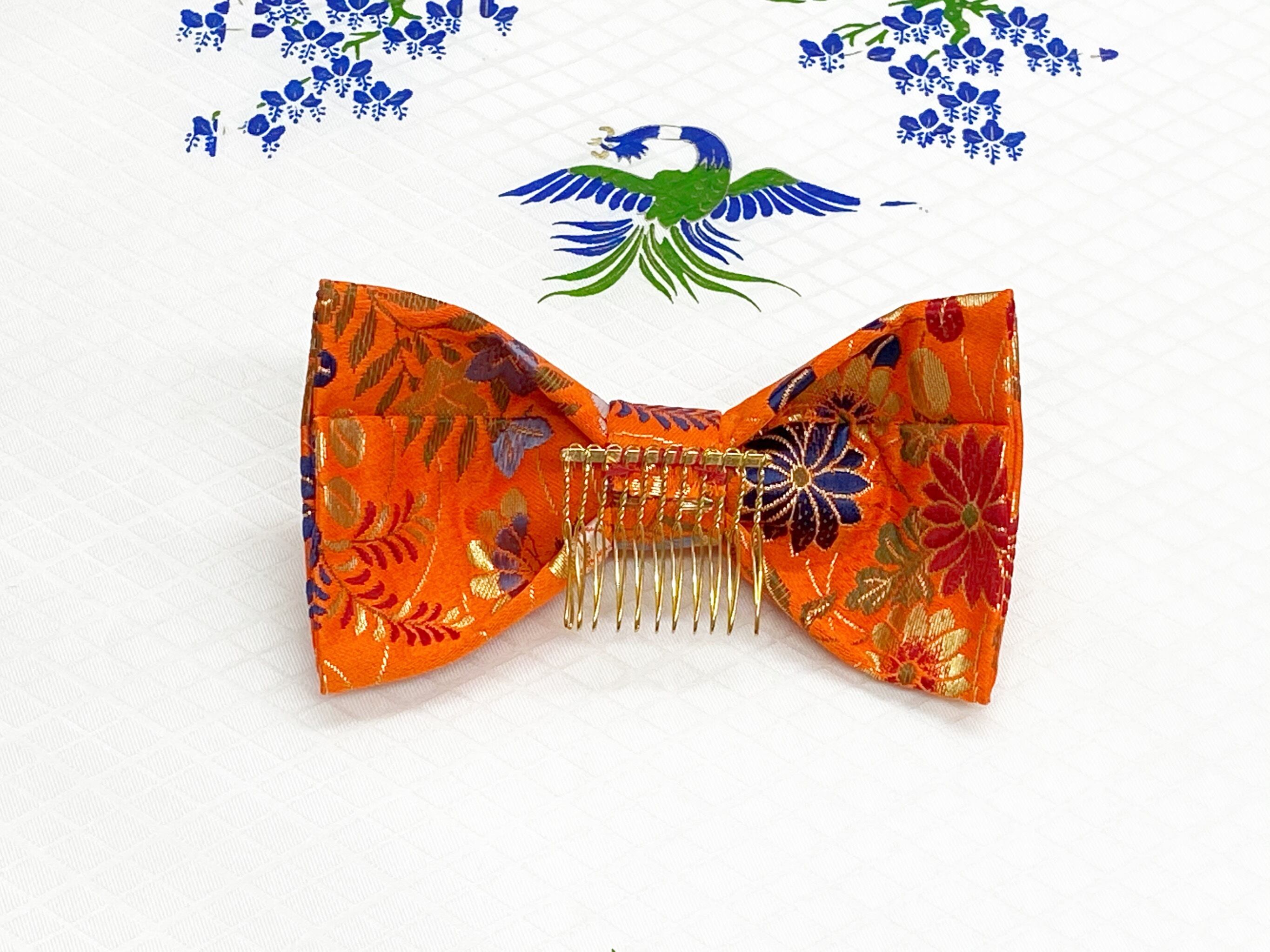 和風リボン○髪飾り○菊柄○朱色○m-5 成人式 七五三 結婚式 卒業式 お茶会(送料無料)