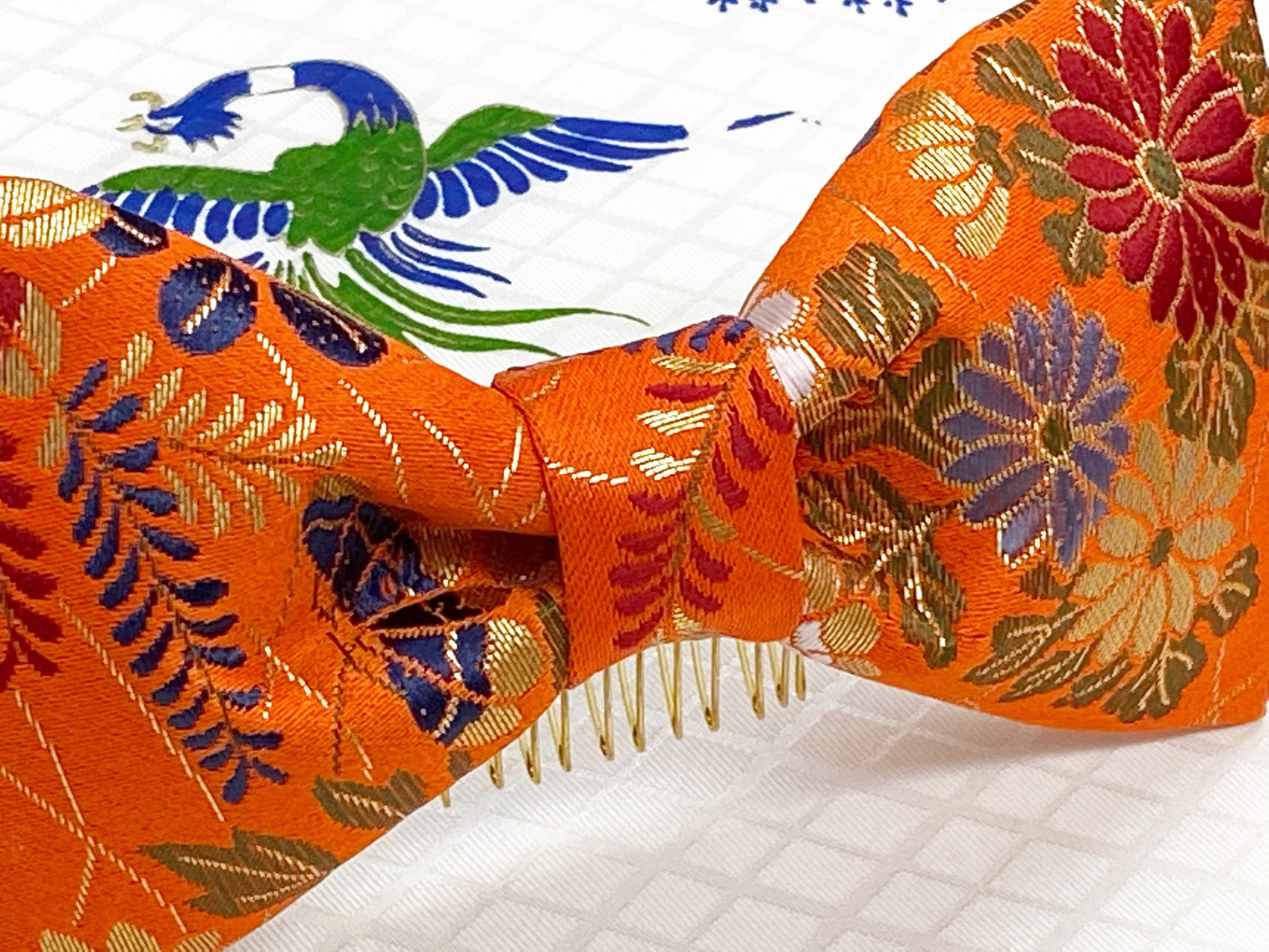 金襴生地で作ったりぼんは光沢があり華やかさを演出してくれます。