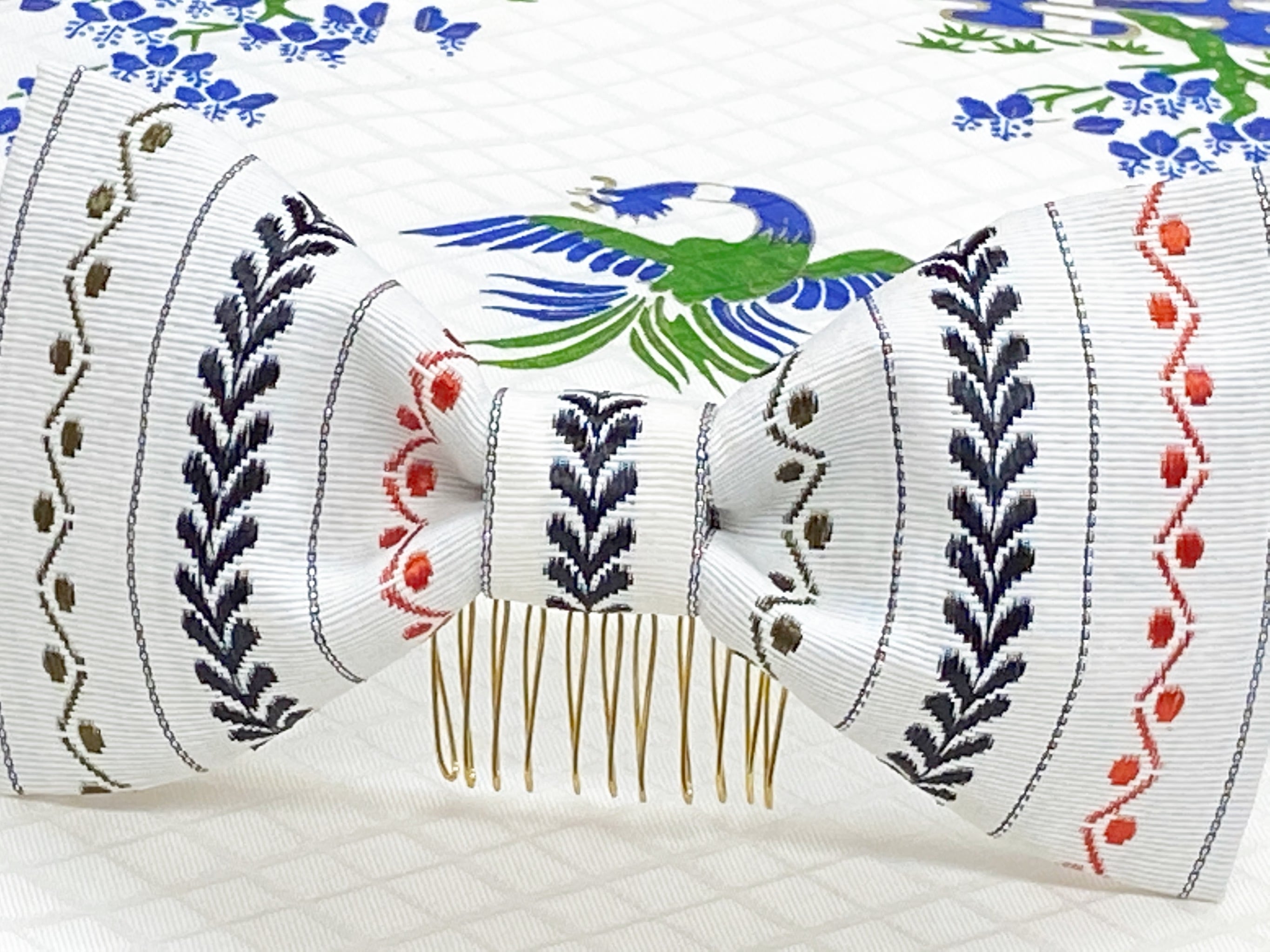 和風リボン○髪飾り○献上帯・縦柄○m-7 成人式 七五三 結婚式 卒業式 お茶会(送料無料)