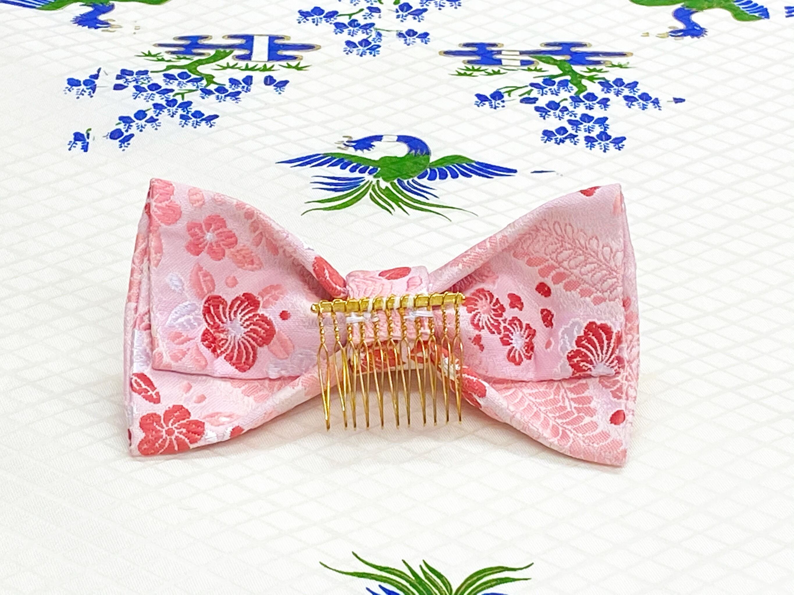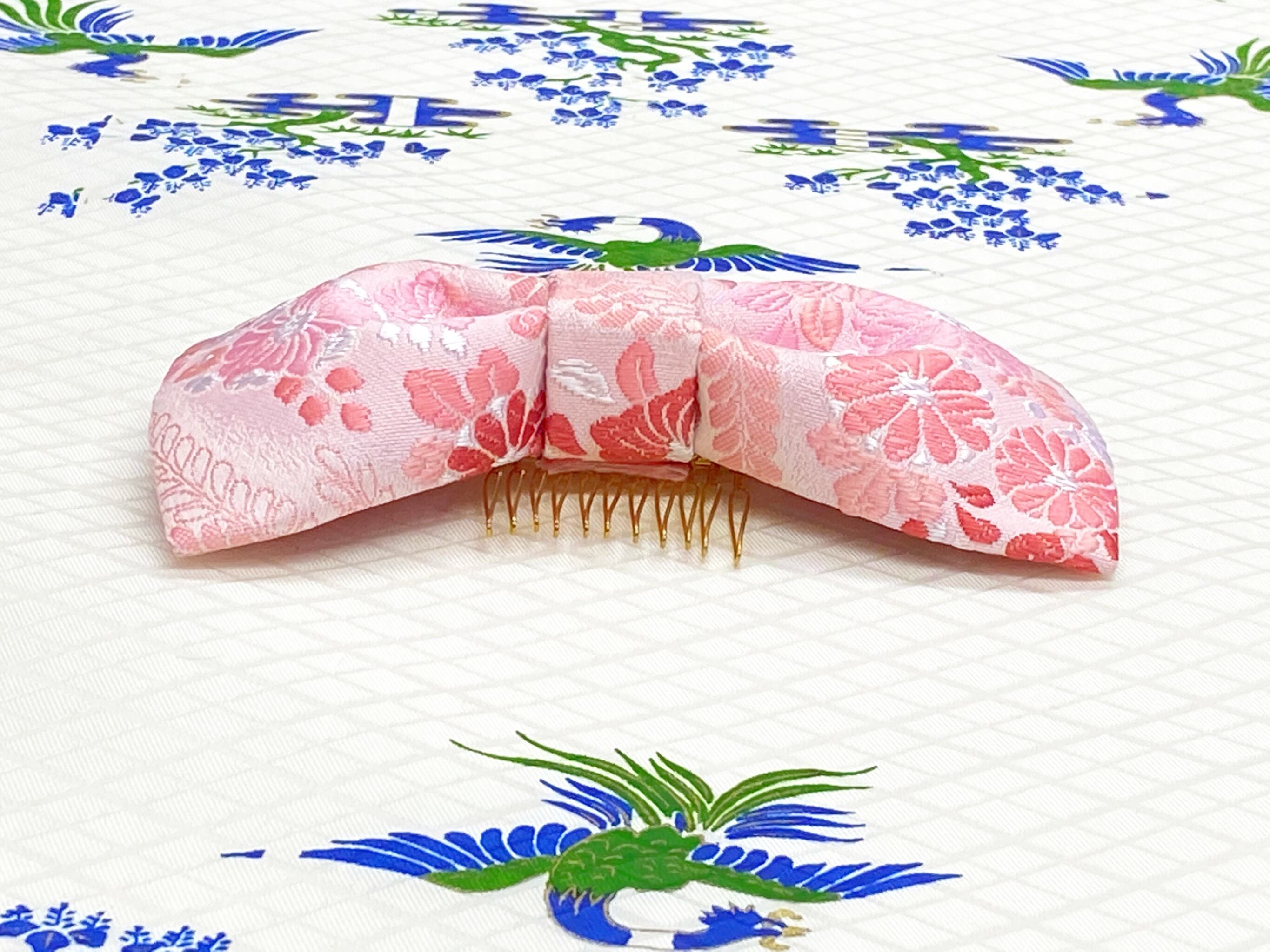 和風リボン○髪飾り○花柄○ピンク色○m-15 成人式 七五三 結婚式 卒業式 お茶会(送料無料)