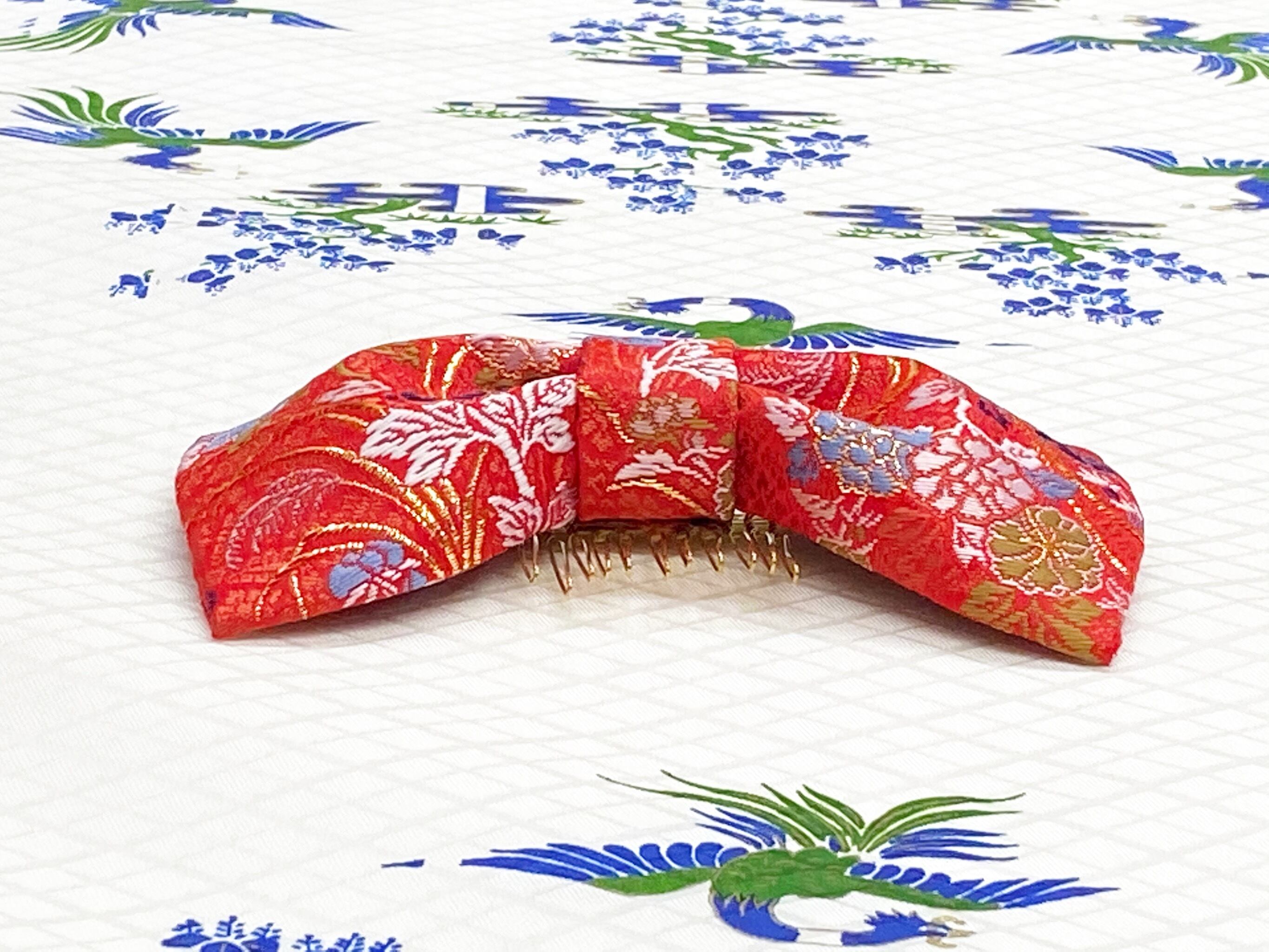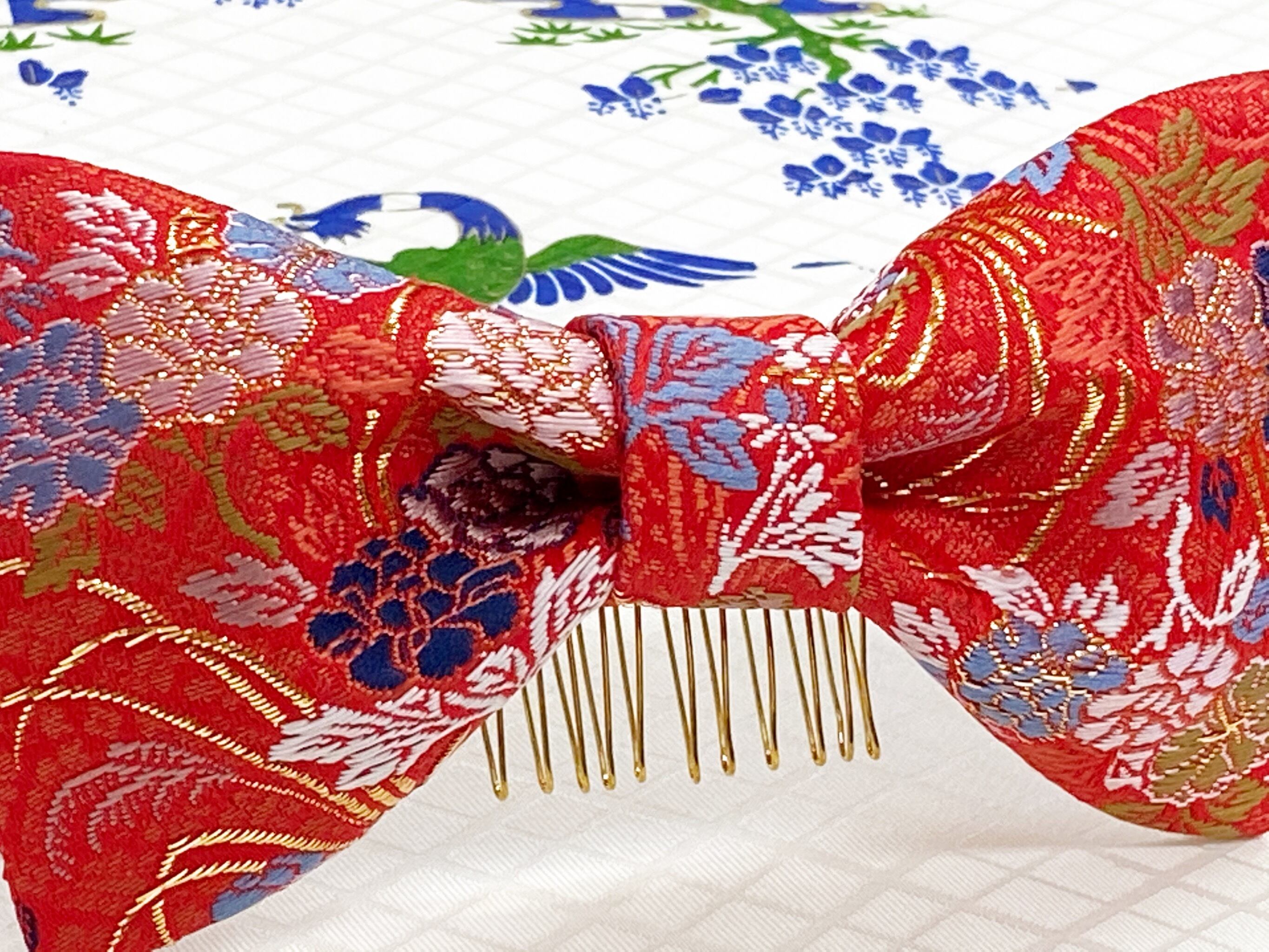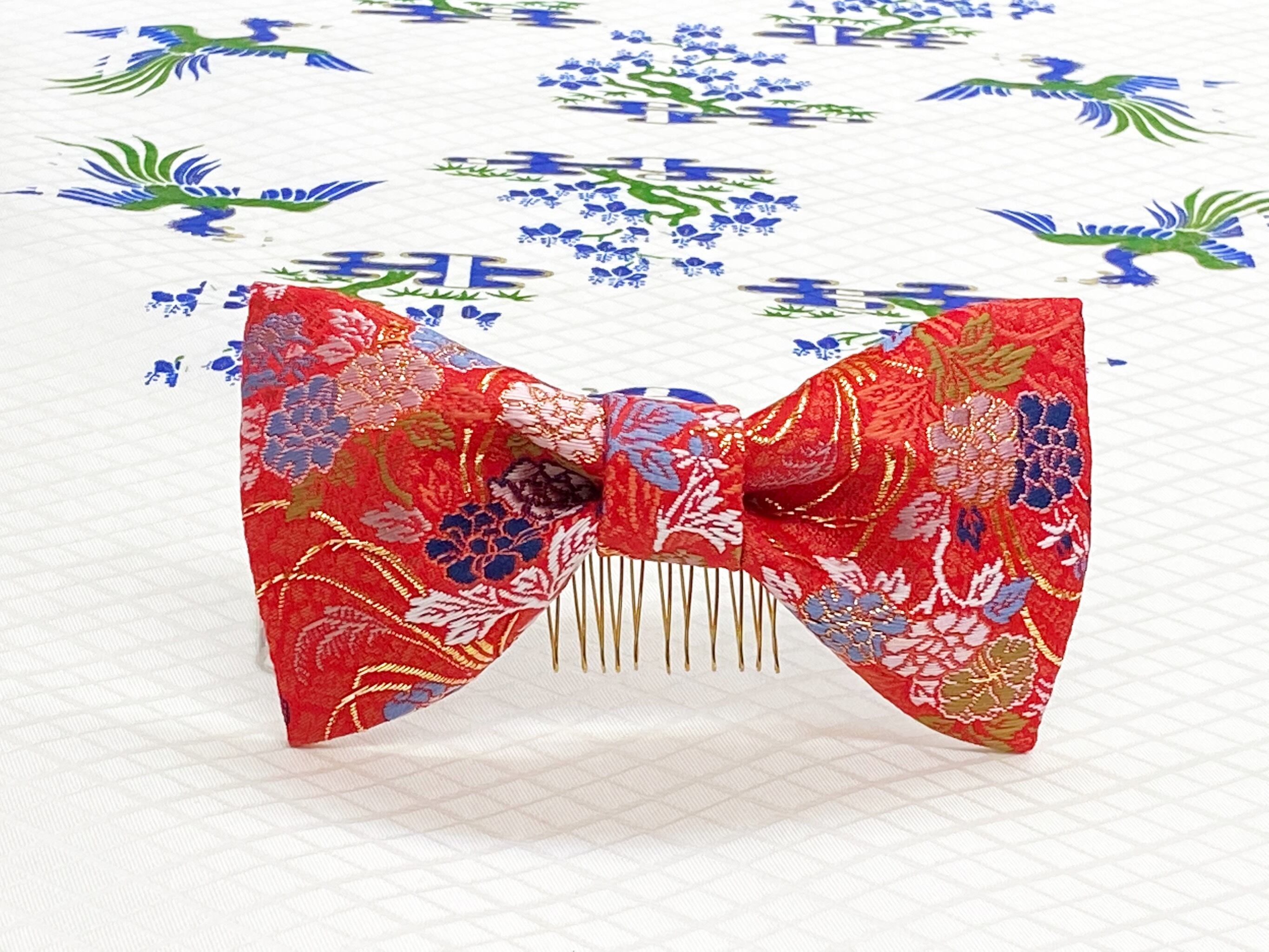 和風リボン○髪飾り○花柄○赤色○m-19 成人式 七五三 結婚式 卒業式 お茶会(送料無料)