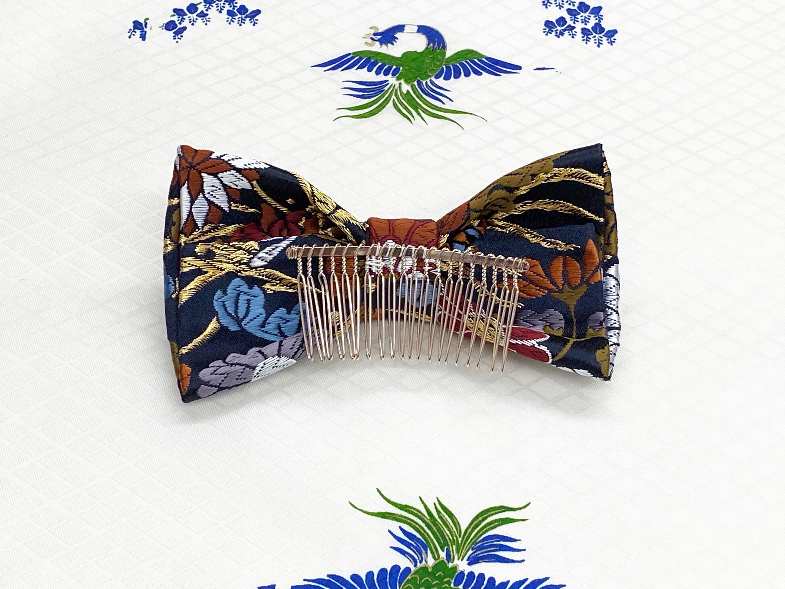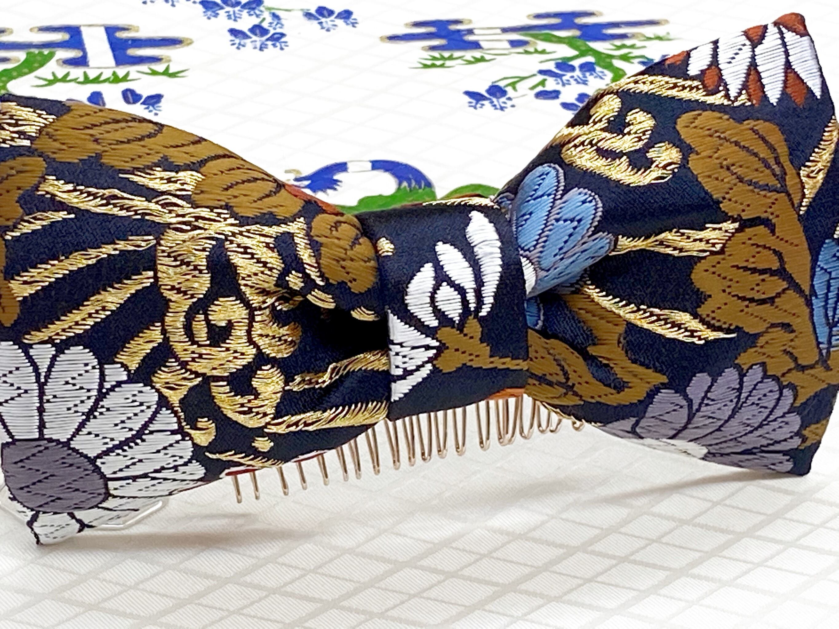 和風リボン○髪飾り○花柄○紺色○m-23 成人式 七五三 結婚式 卒業式 お茶会(送料無料)
