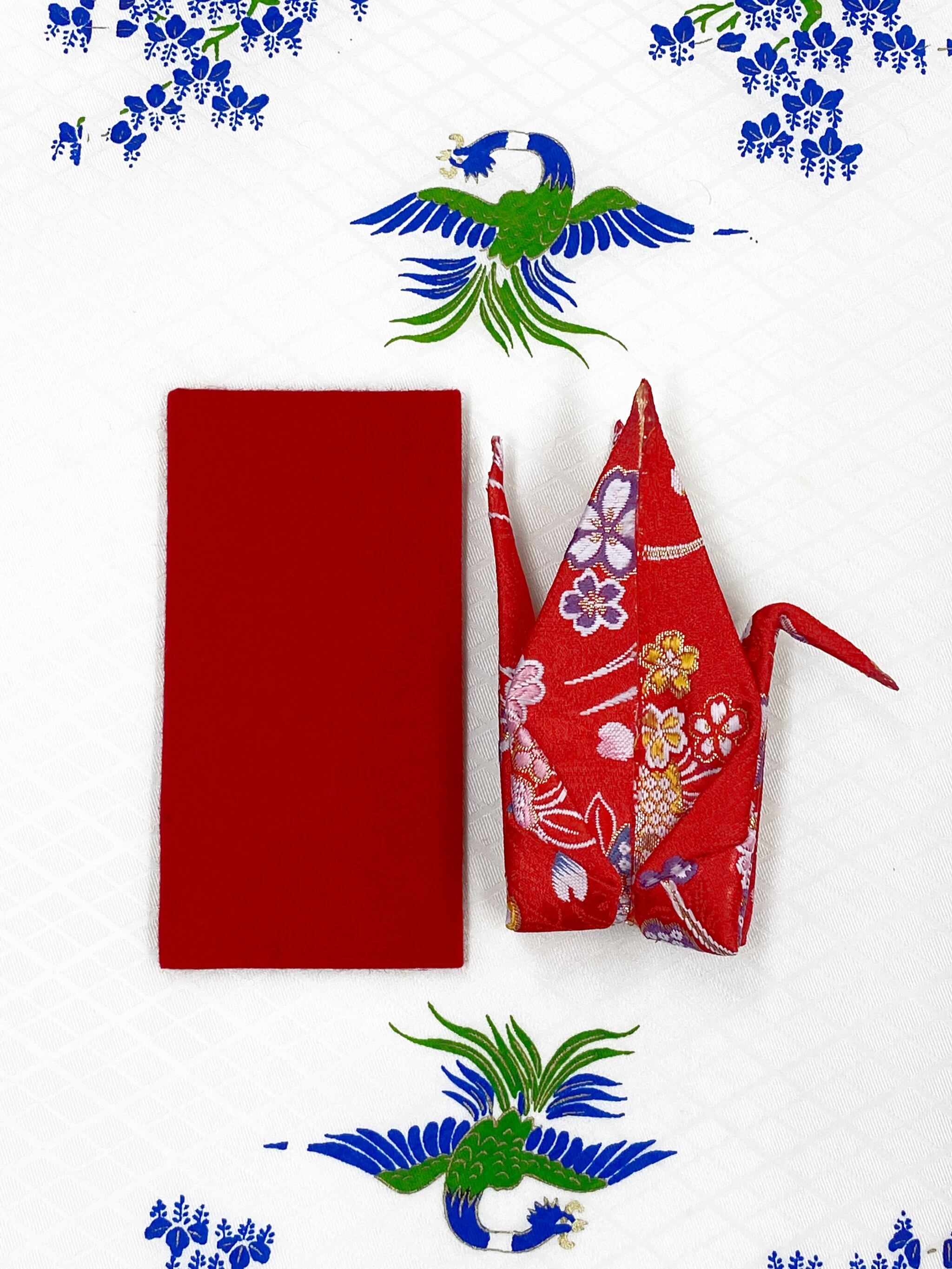 折り鶴○桜柄○赤色○金襴折鶴-4