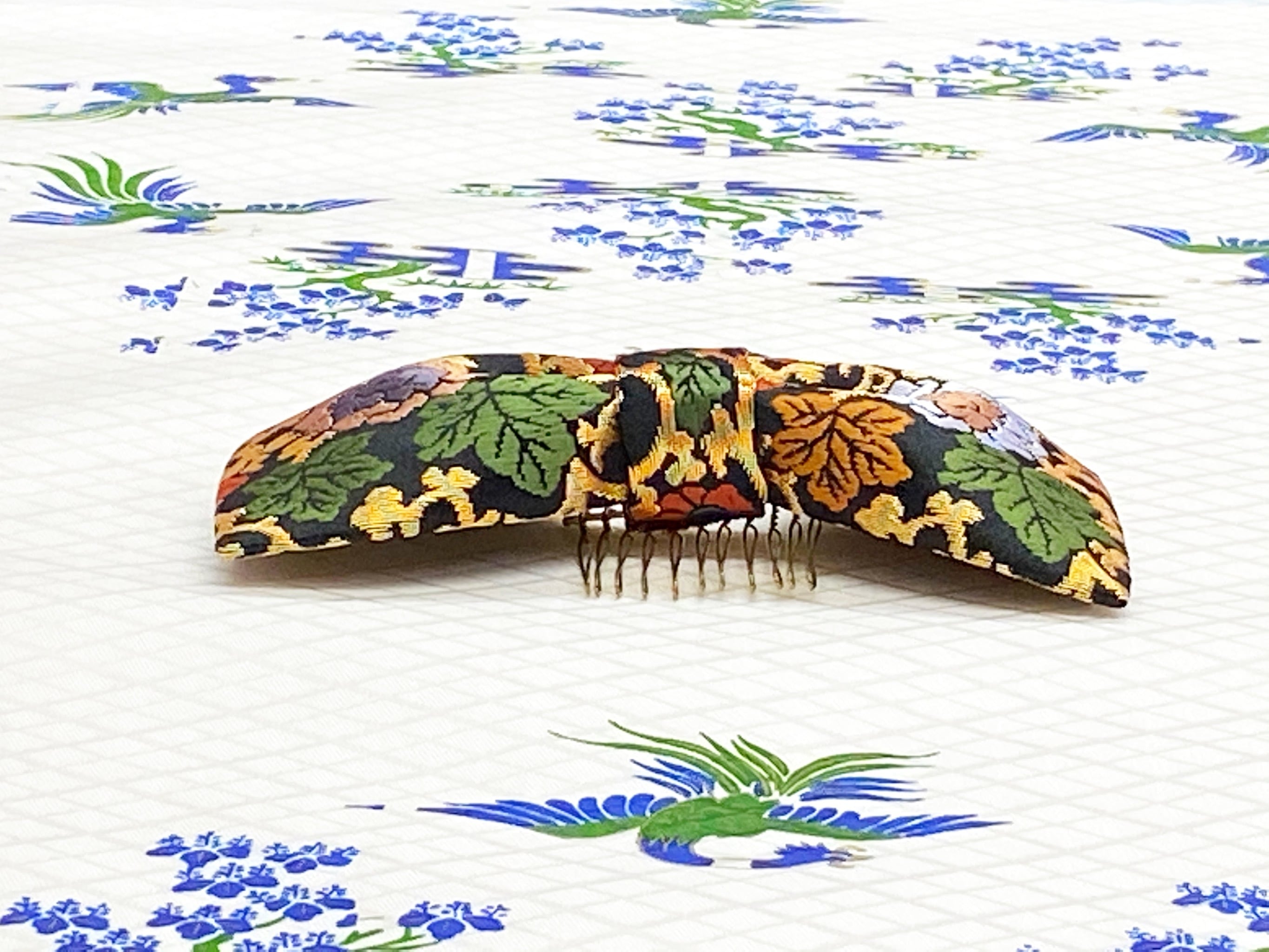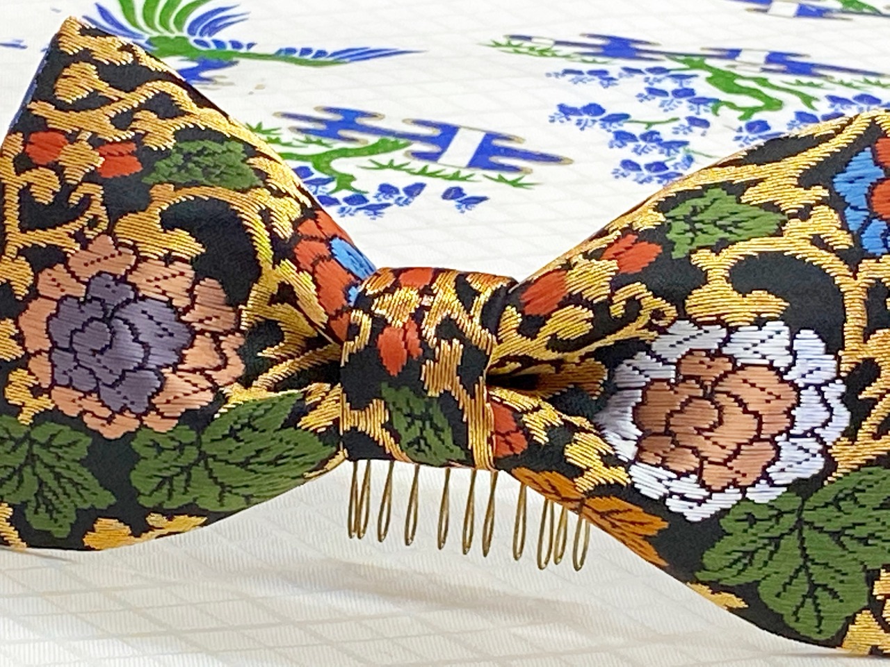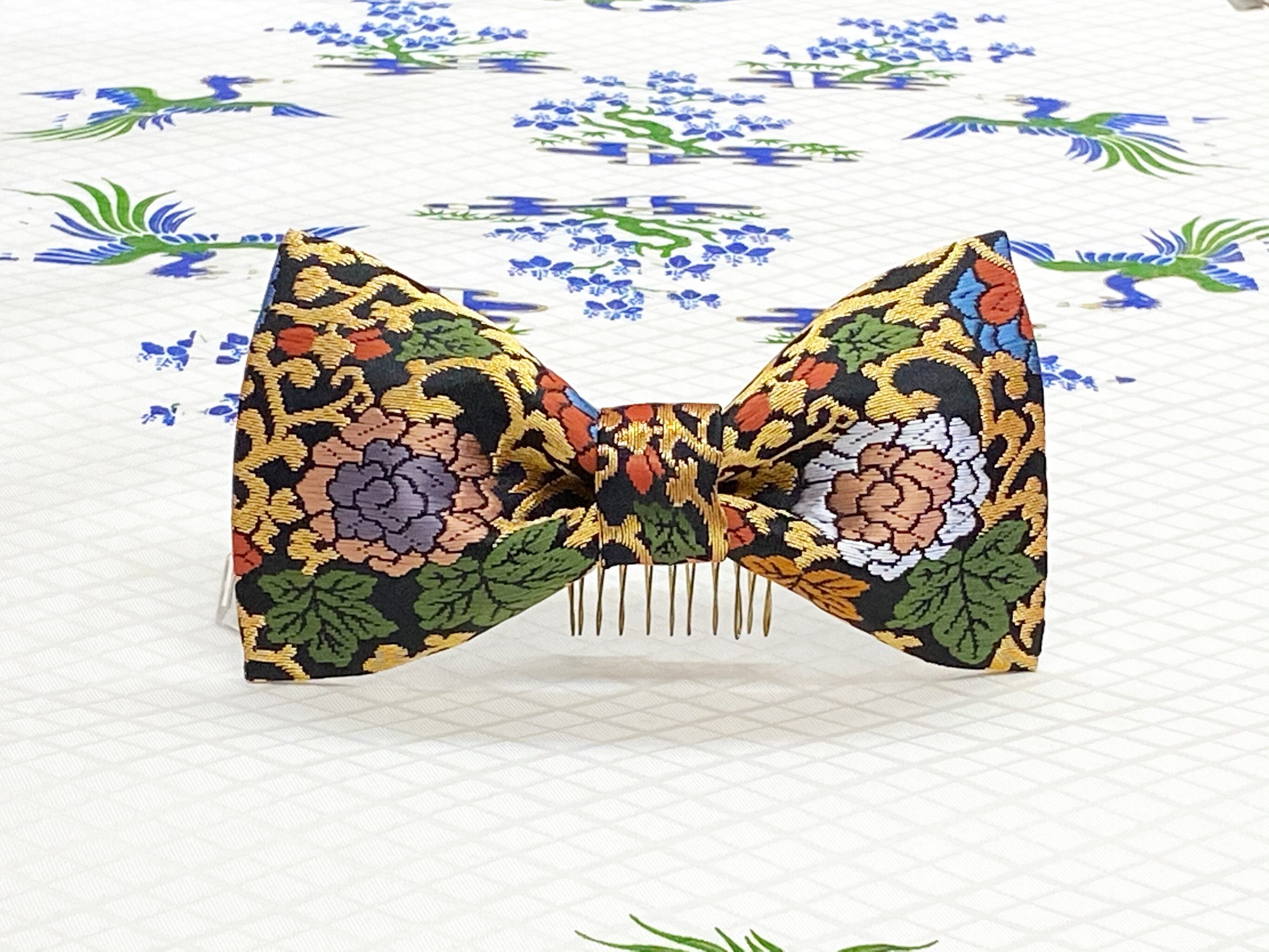 和風リボン○髪飾り○花唐草模様○黒色○m-30 成人式 七五三 結婚式 卒業式 お茶会(送料無料)