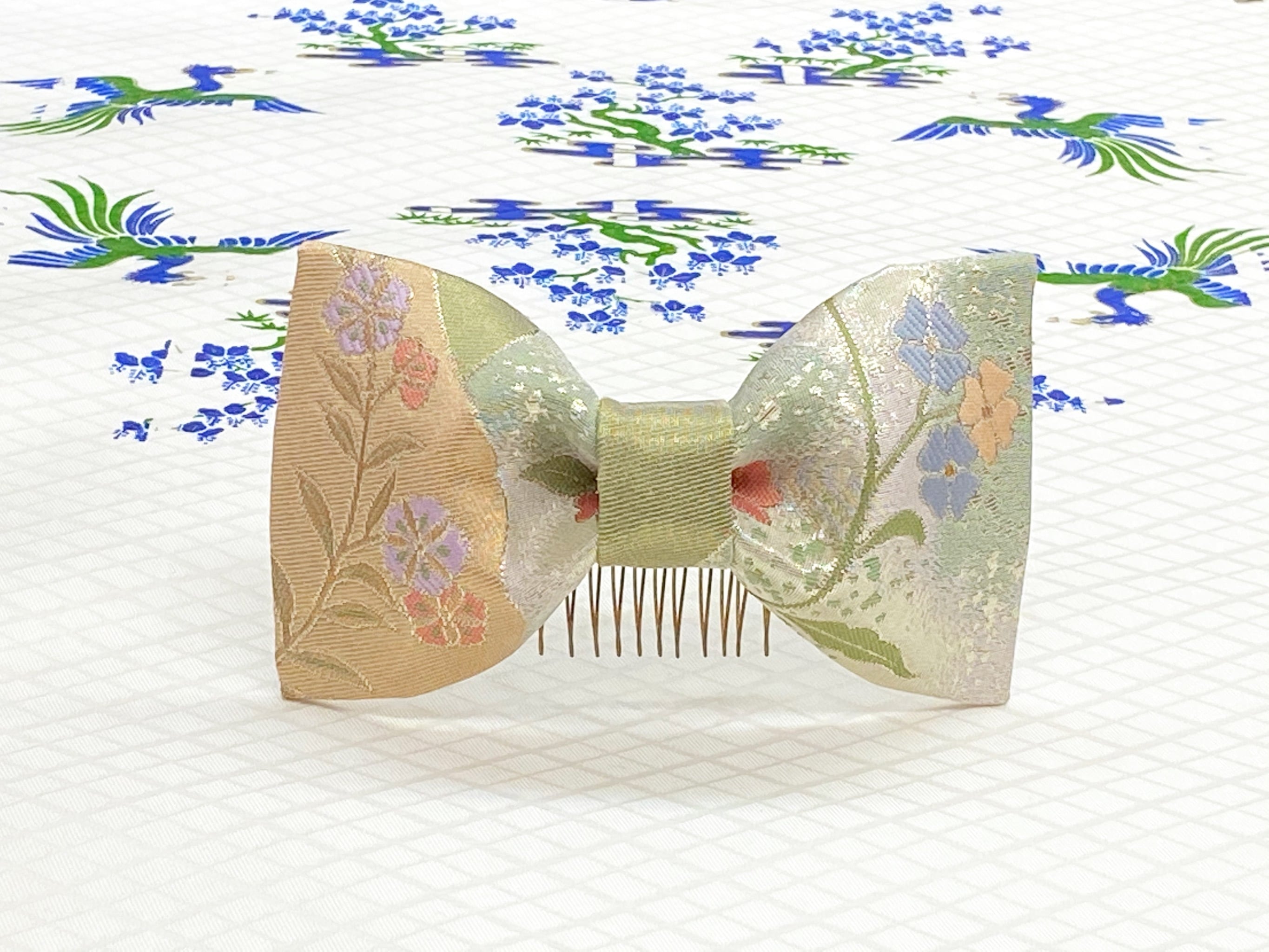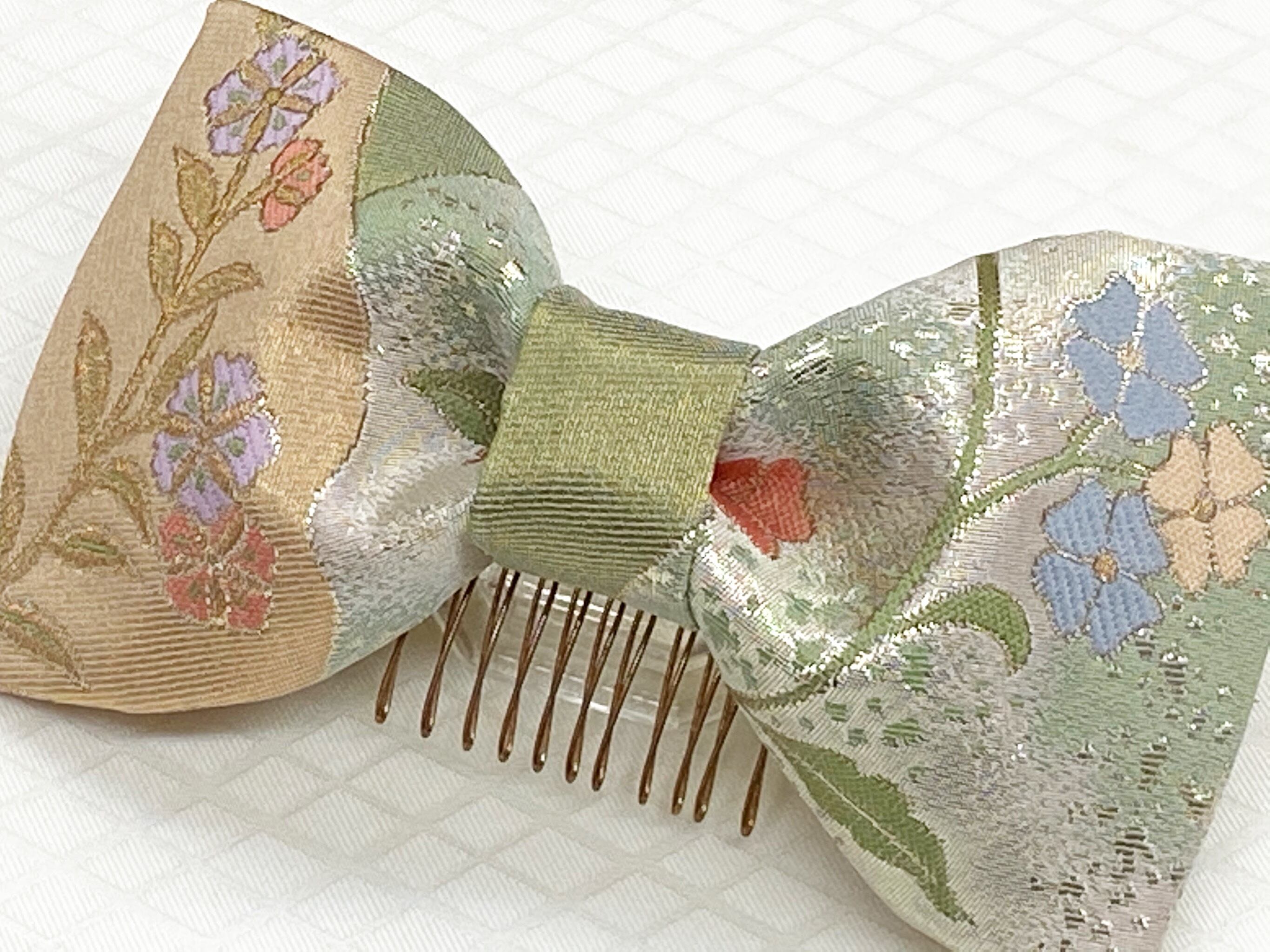 和風リボン○髪飾り○花柄○シルバー色○m-34 成人式 七五三 結婚式 卒業式 お茶会(送料無料)