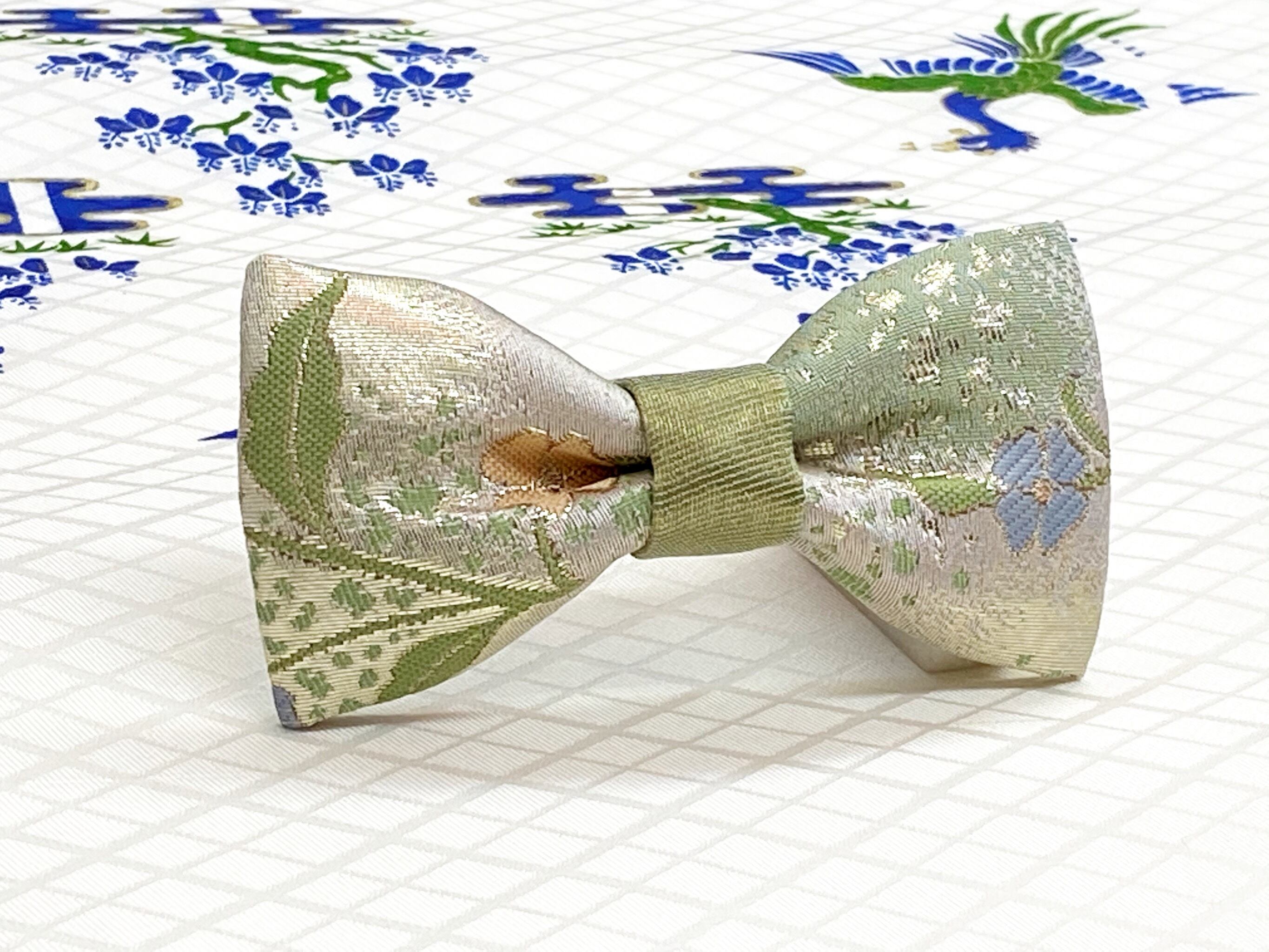 和風りぼん○蝶ネクタイ○髪飾り○花柄○シルバー・薄緑色○s-38 結婚式 成人式 卒業式 七五三 入学式【送料無料】