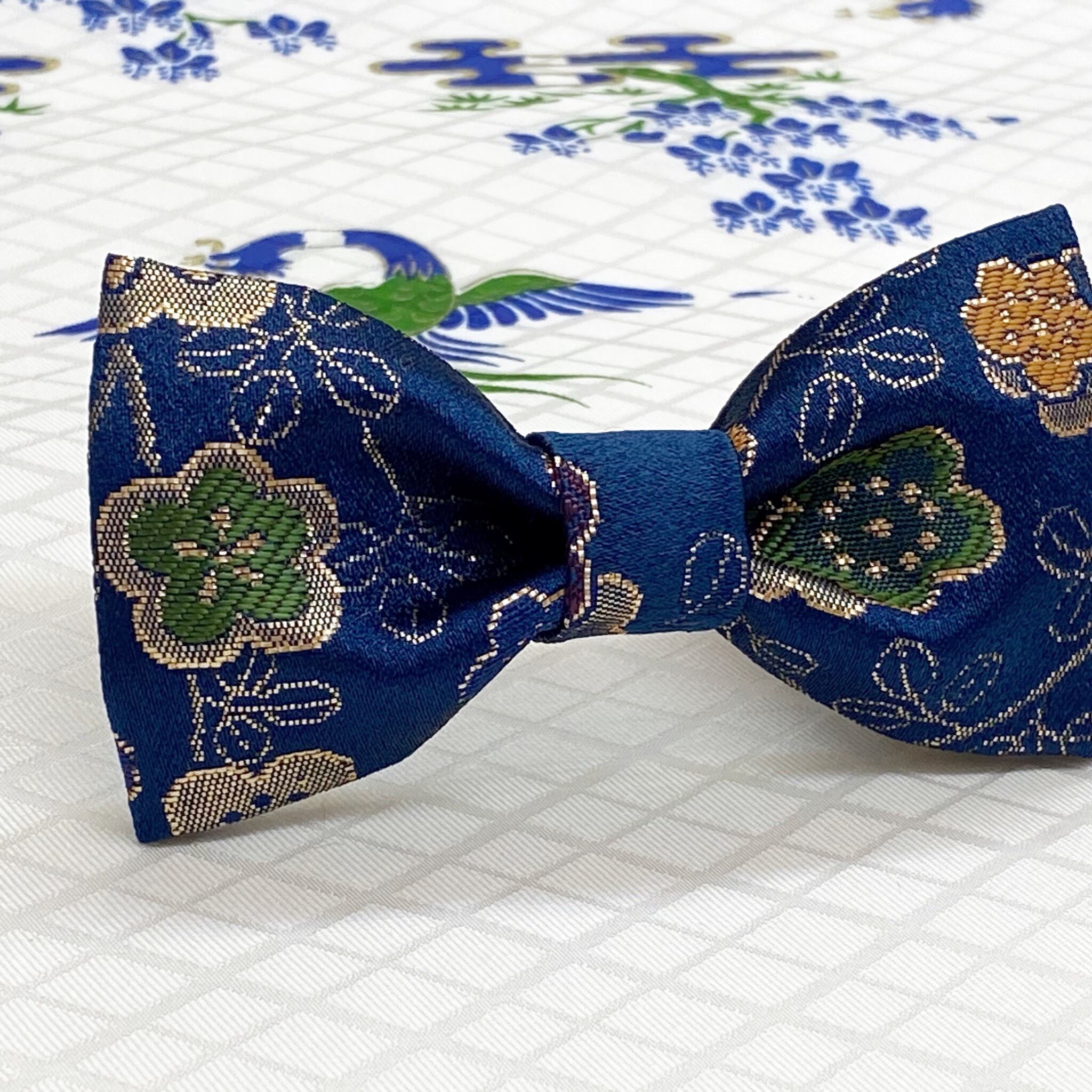 和風りぼん○蝶ネクタイ○髪飾り○花柄○紺色○s-43 結婚式 成人式 卒業式 七五三 入学式【送料無料】