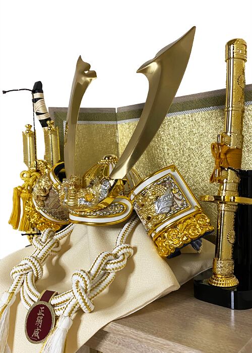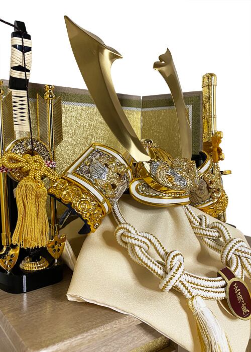 兜、屏風、飾り台、弓太刀一式お届けします。